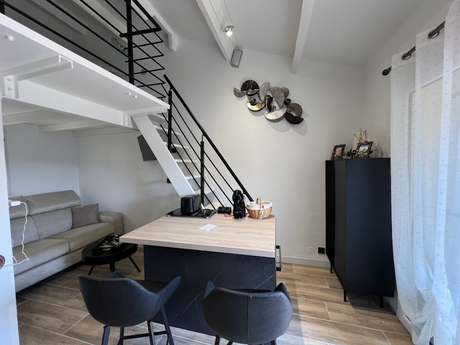 Dans une résidence située sur les hauteurs de ST Pierre la Mer, ce pavillon entièrement restructuré se compose d'un séjour avec coin cuisine équipé, une cabine salon avec un canapé convertible , une mezzanine avec un lit pour 2 presonnes, salle d'eau avec douche et wc incorporés. Climatisation reversible. terrasse d'env 20m2 sans vis à vis. Parking privé devant. Piscine dans la résidence Env 800 m de la plage et du centre.