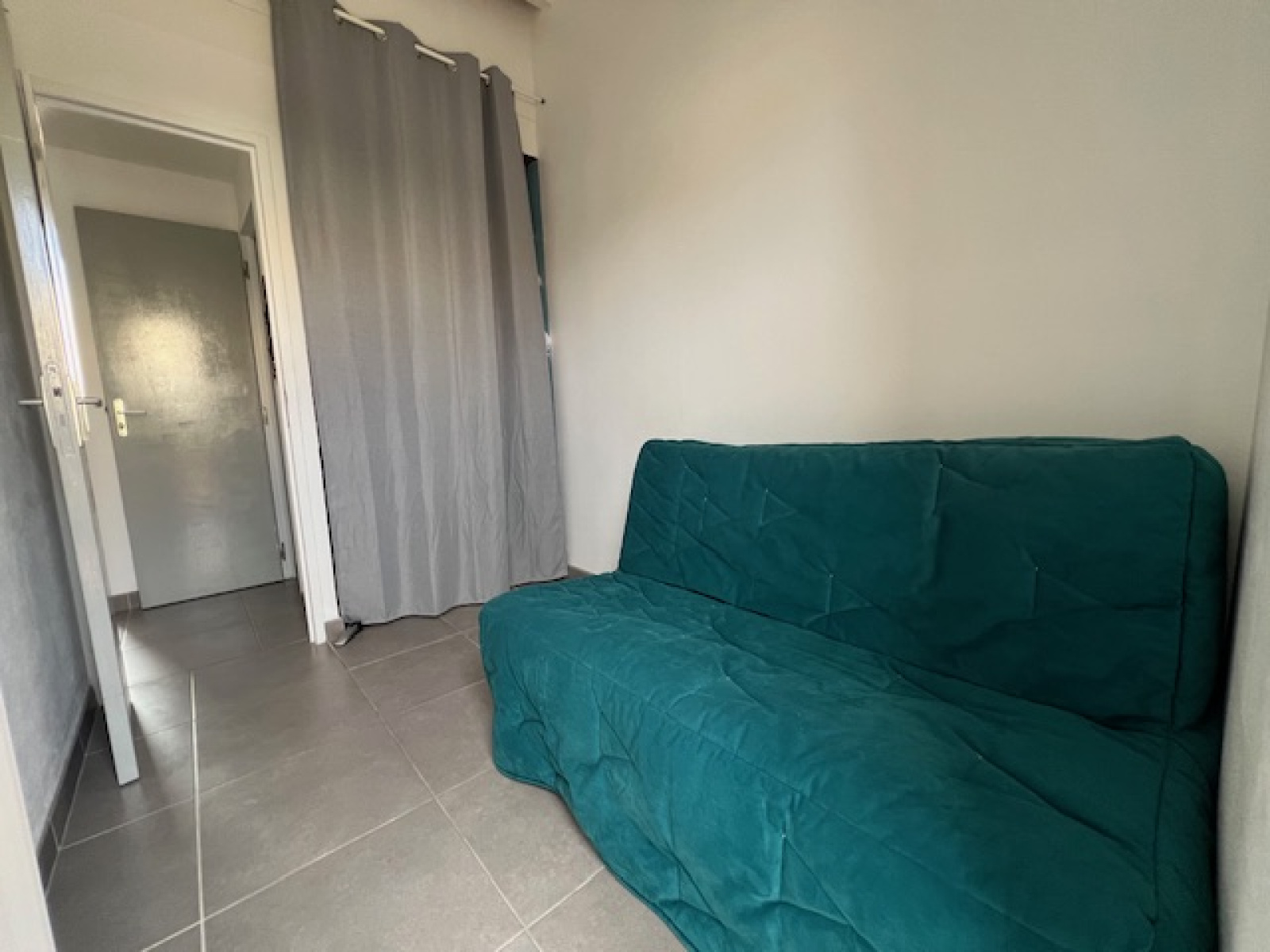 Coin salon avec un canapé non convertible, 1 chambre avec un lit pour 2 personnes et une chambre avec un canapé convertible pour 2 personnes, climatisation