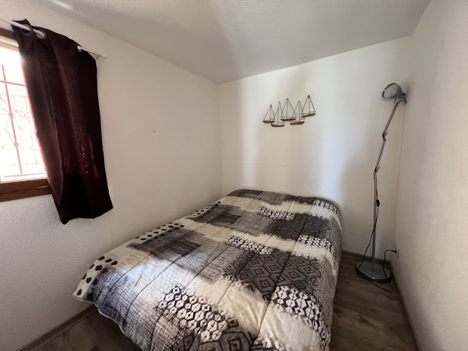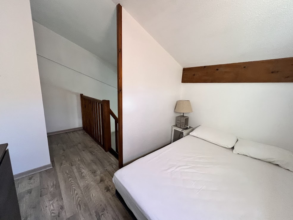 Une chambre avec un lit pour 2 pers, et une mezzanine avec 1 lit pour 2 pers. salle d'eau avec douche et wc