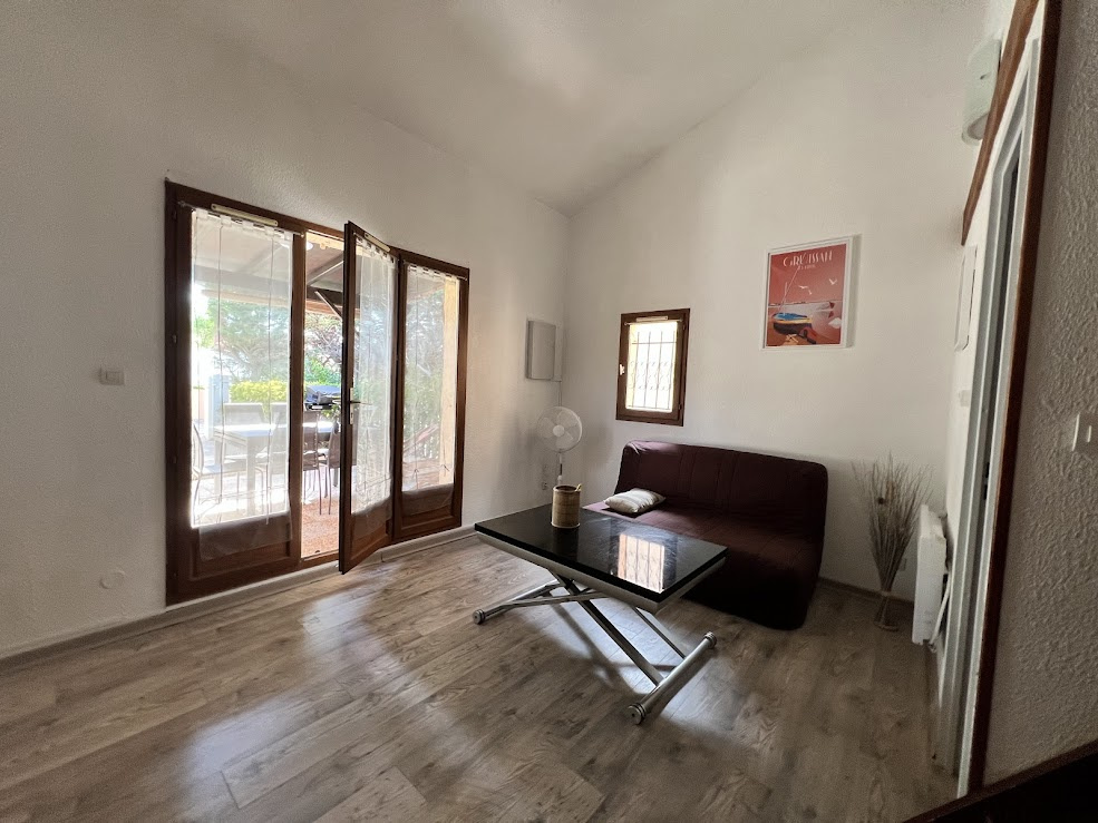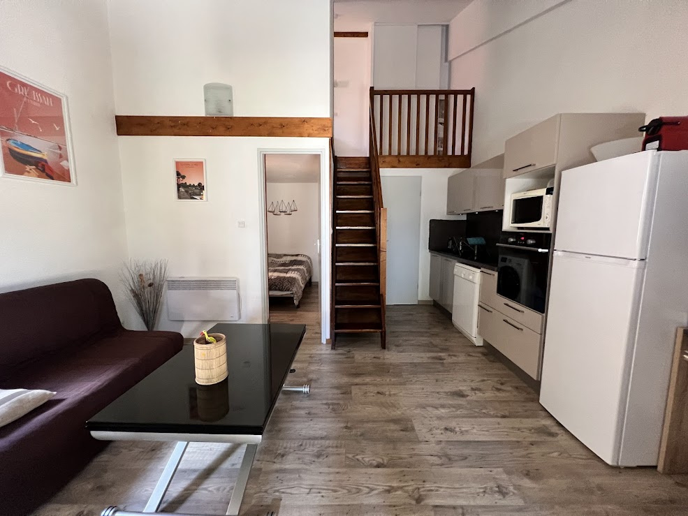 Il se compose d'un séjour avec un canapé non convertible, une cuisine entièrement équipée lave linge, lave vaisselle, frigo congél, micro ondes ....