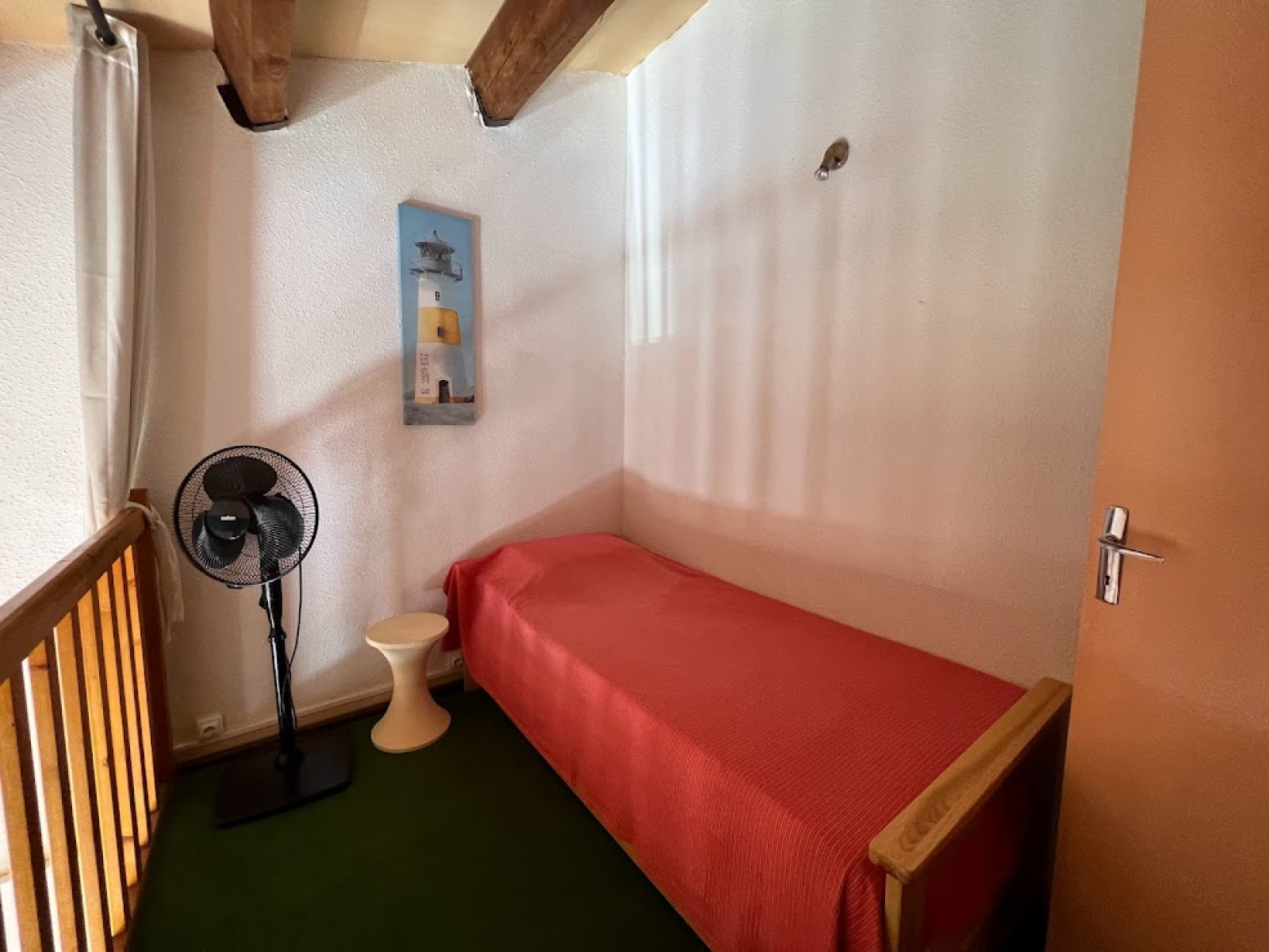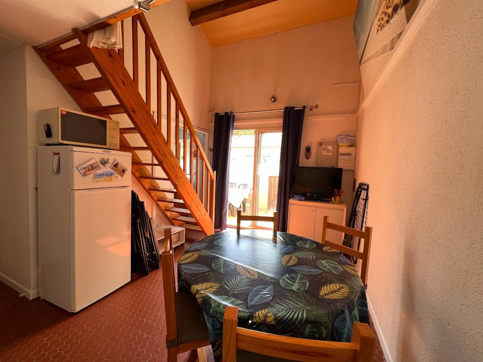 Situé à 2 pas de la plage, ce pavillon se compose d'un séjour cuisine tout équipé, 1 chambre avec un lit pour 2 personnes, wc et salle d'eau, à l'étage une chambre avec un lit pour 2 personnes et une mezzanine avec un lit pour 1 personne . il y a un climeur mobile dans le pavillon.