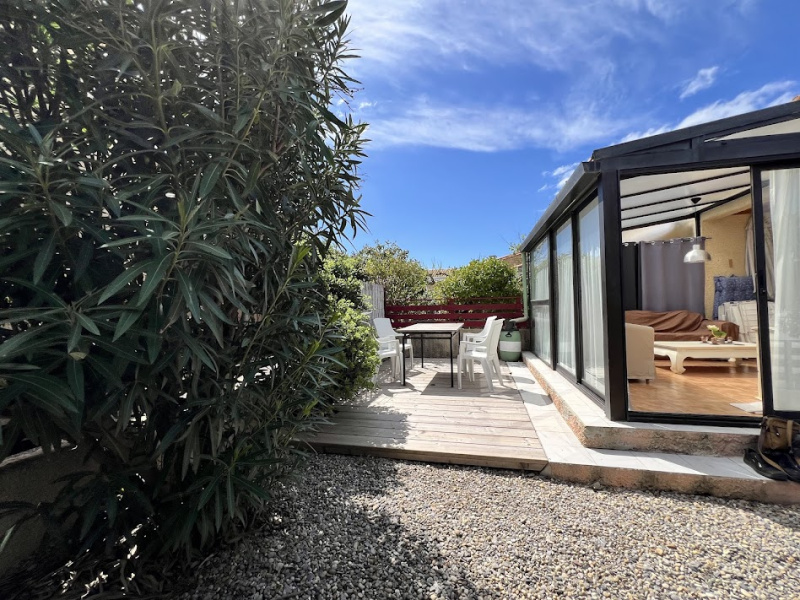 Villa individuelle sur un terrain arboré d'env 150m2, elle se compose d'un séjour avec coin cuisine équipée, une chambre avec 1 lit pour 2 pers, une chambre avec 2 lits 1 pers et une autre chambre avec 1 lit 2 pers, salle d'eau et wc, garage pour rentrer les affaires de plage et de jardin, agréable véranda sur le jardin.