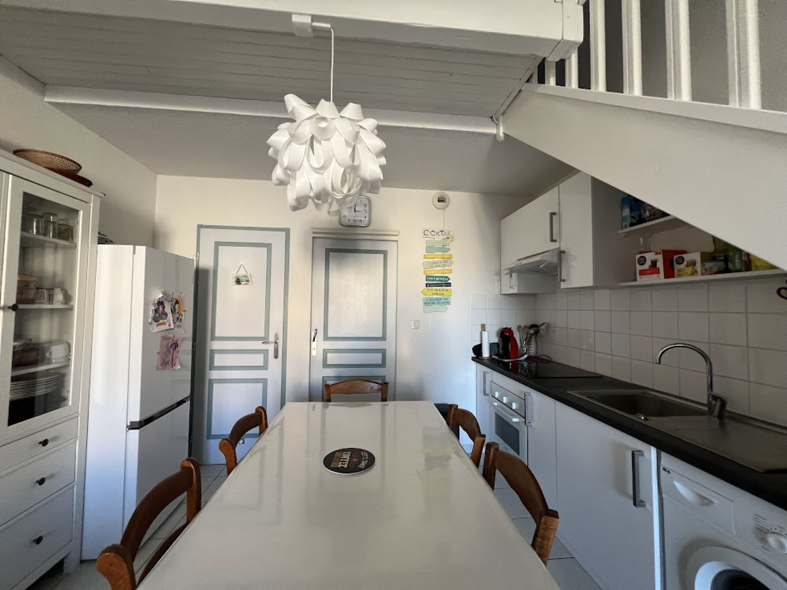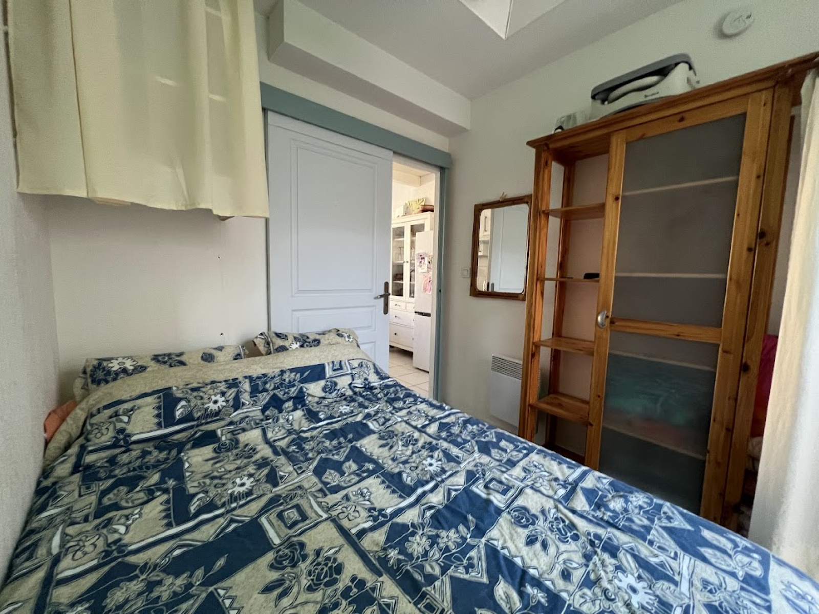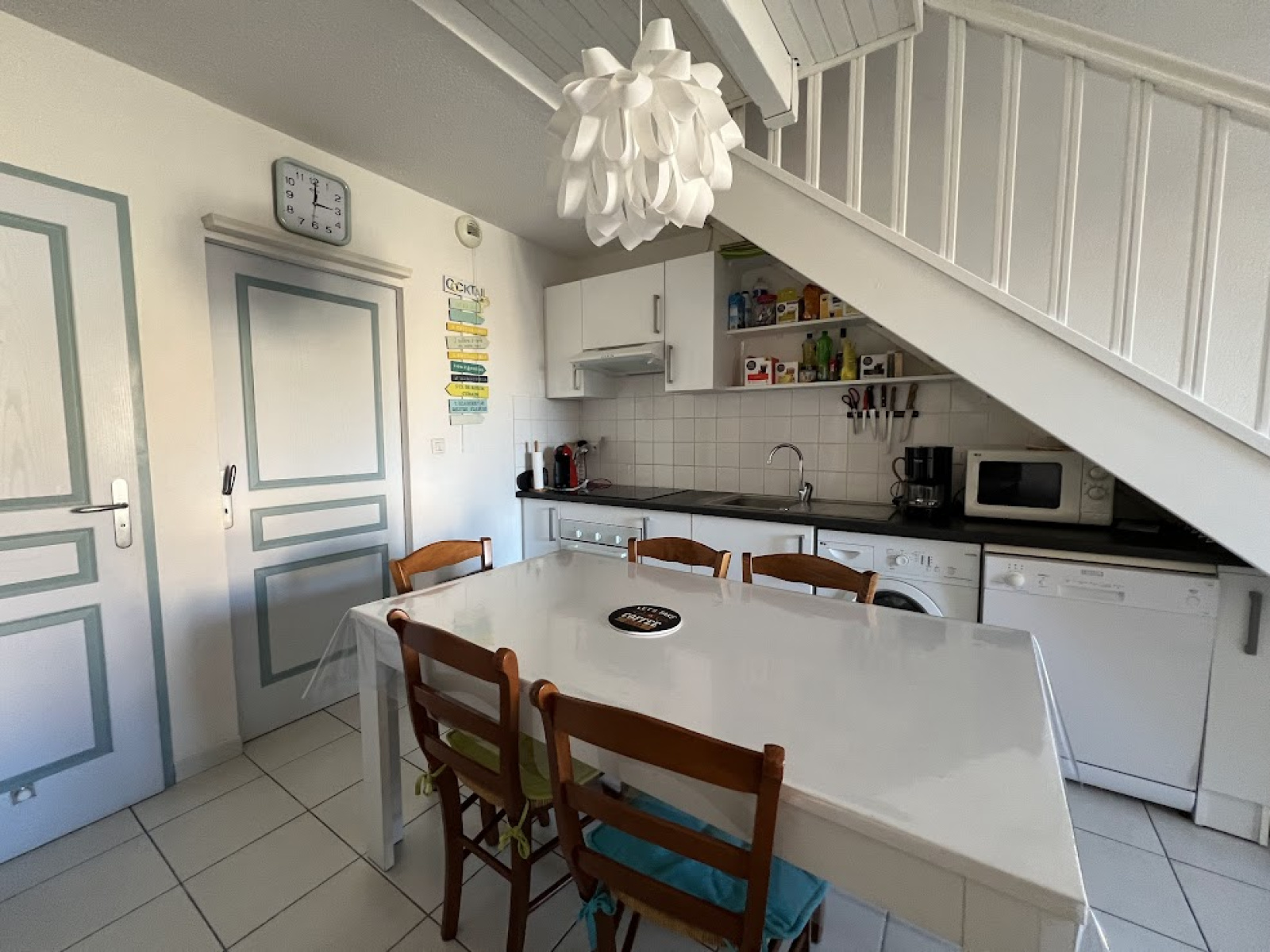 Il se compose au rez de chaussée d'un séjour cuisine tout équipé (lave linge, lave vaisselle, frigo congel..) avec un canapé non convertible, une chambre avec un lit pour 2 pers, salle d'eau et wc,