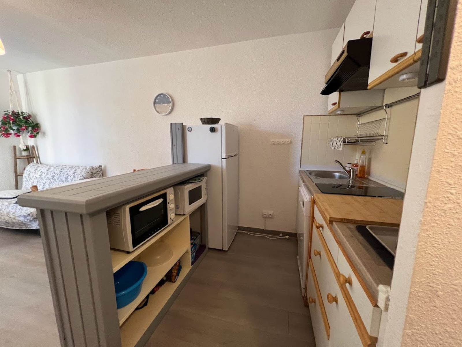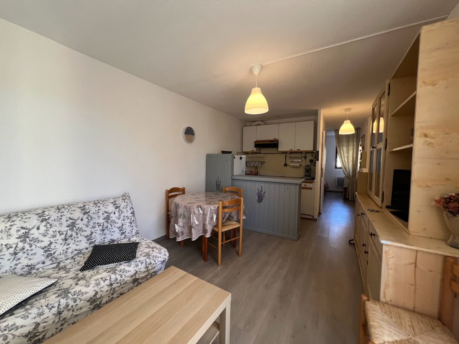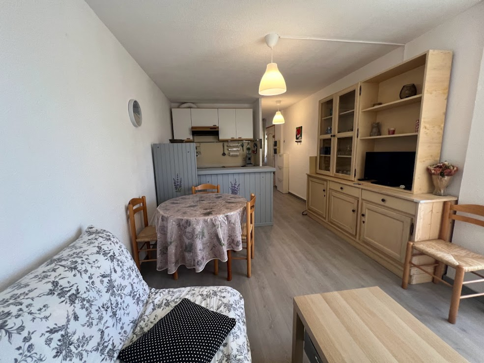 composé d'un séjour avec un canapé convertible, un coin cuisine tout équipé, une chambre avec un lit pour 2 personnes, salle d'eau et wc.
