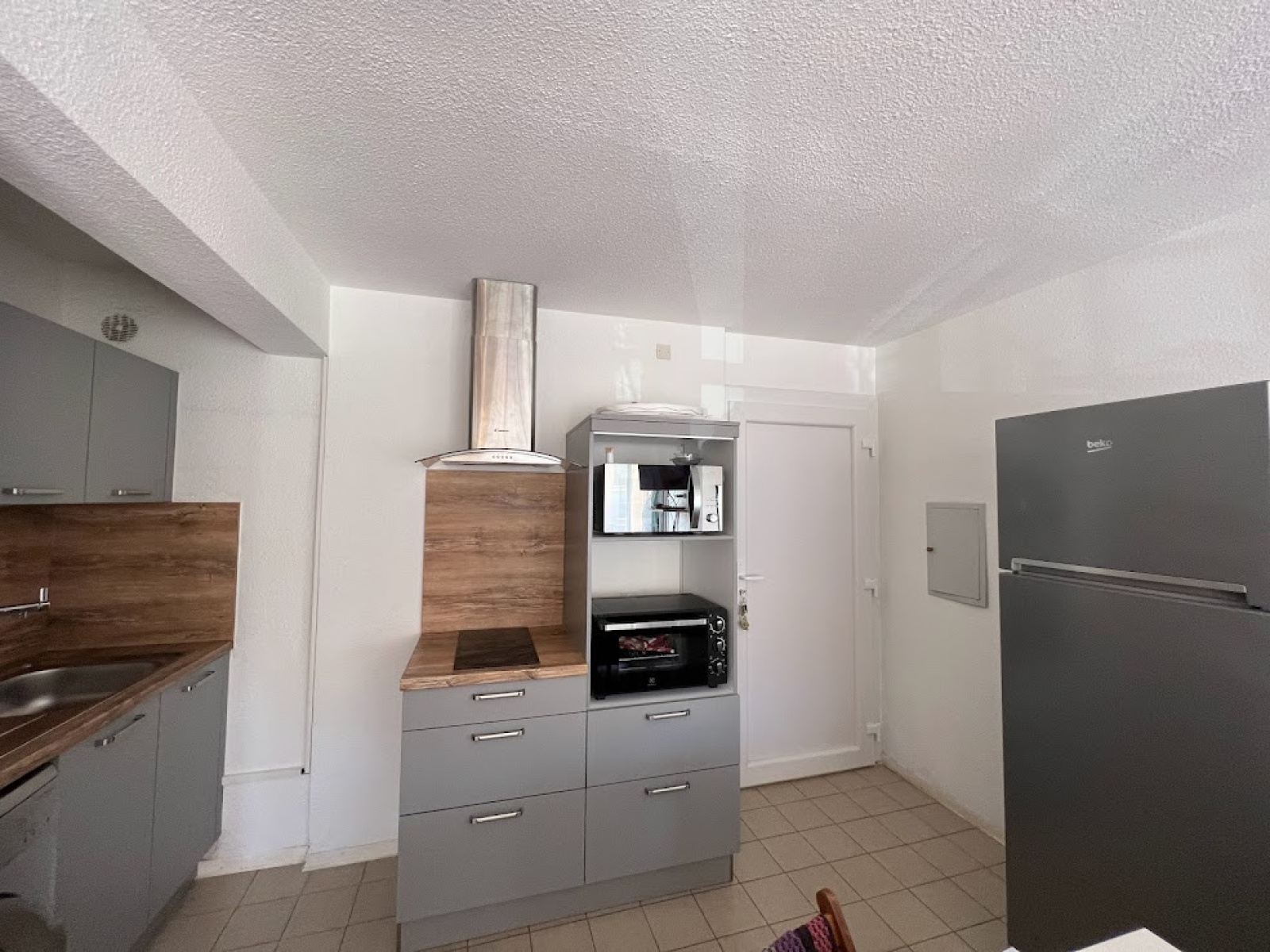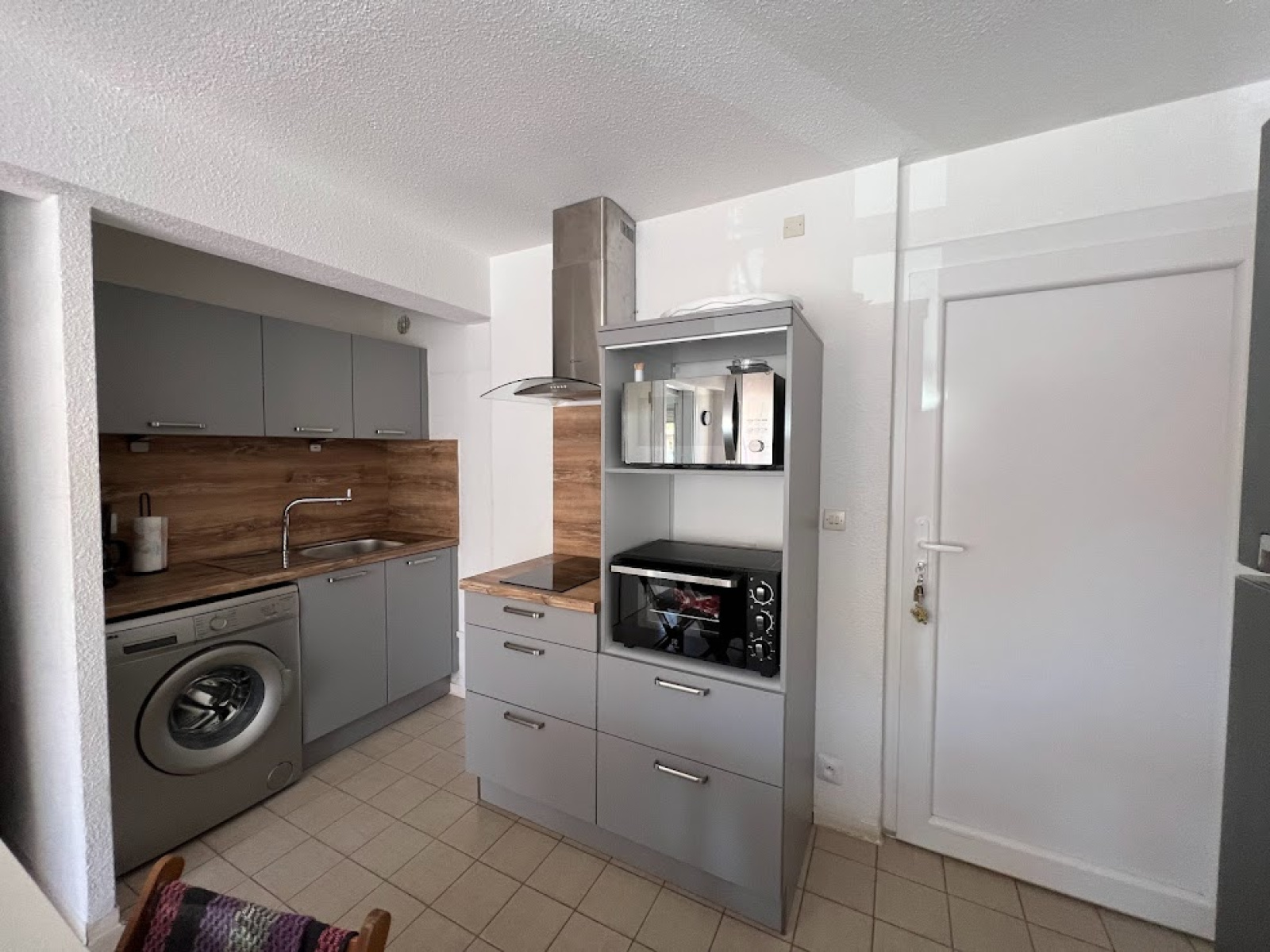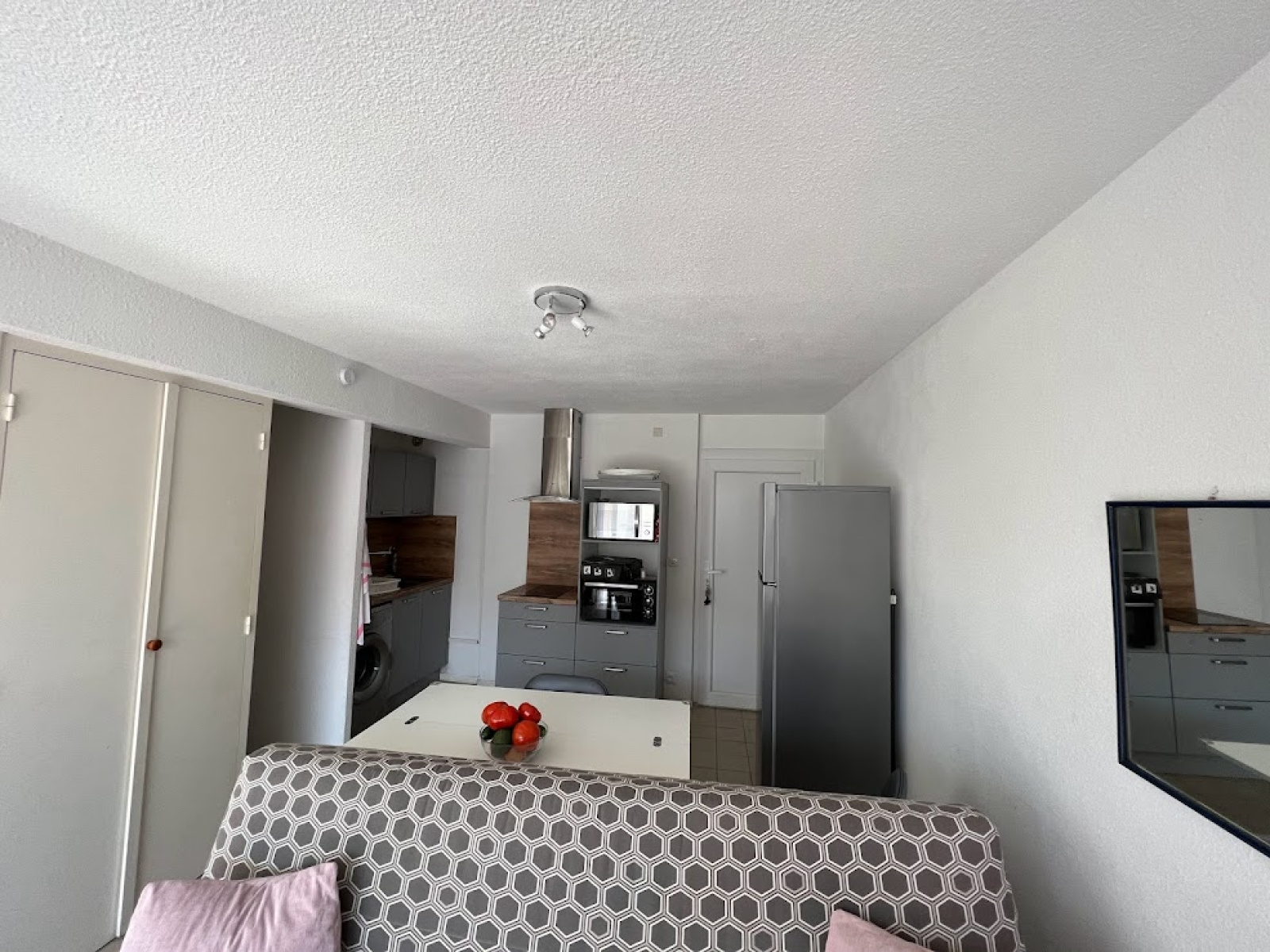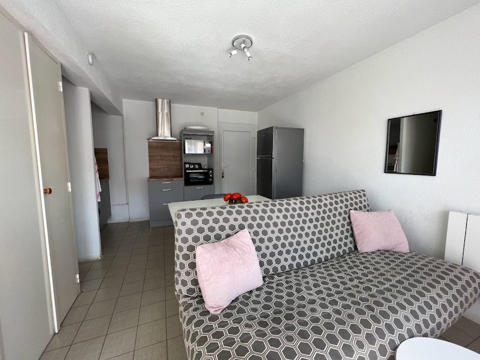Composé d'un séjour/cuisine avec un canapé convertible,