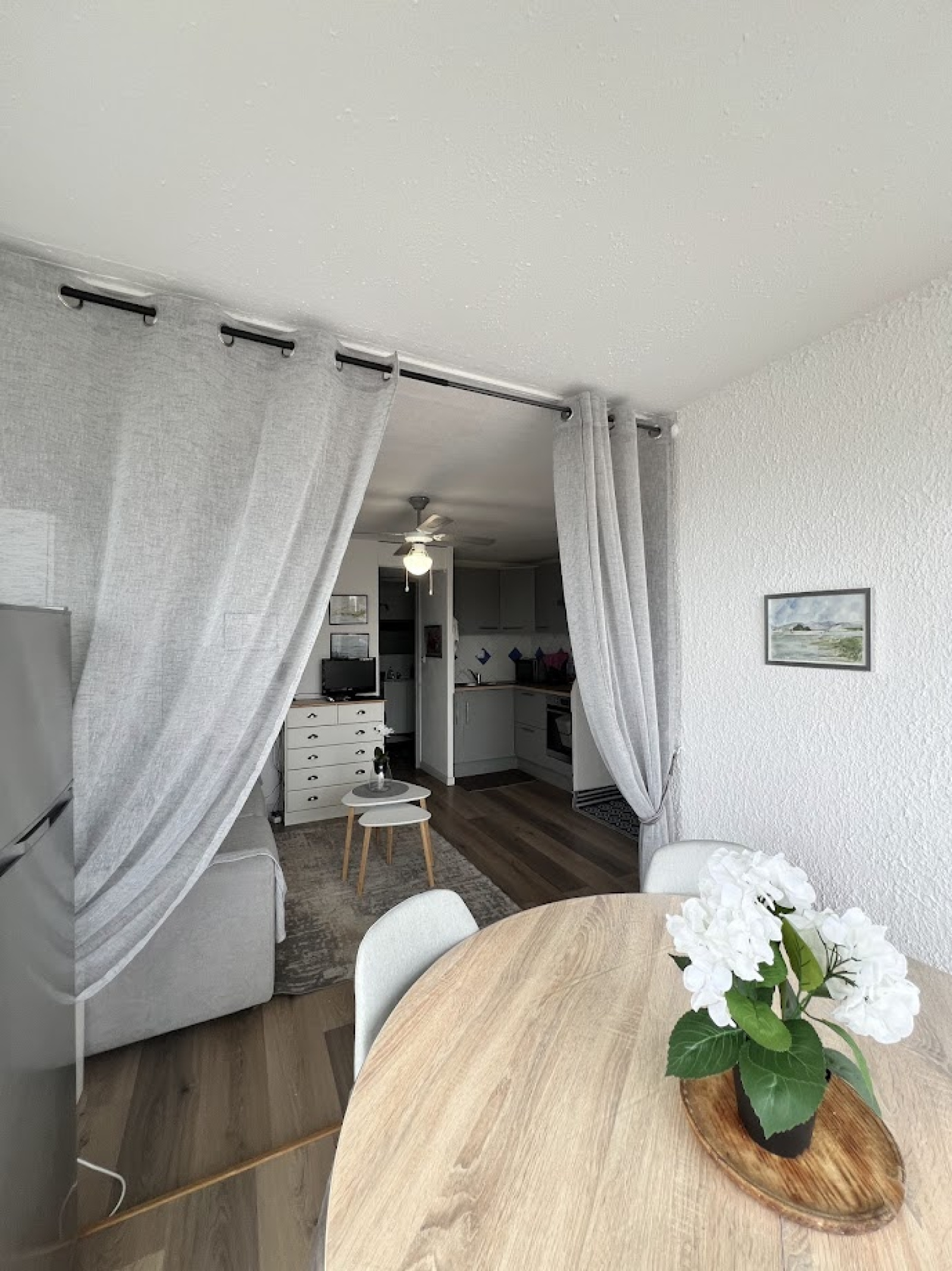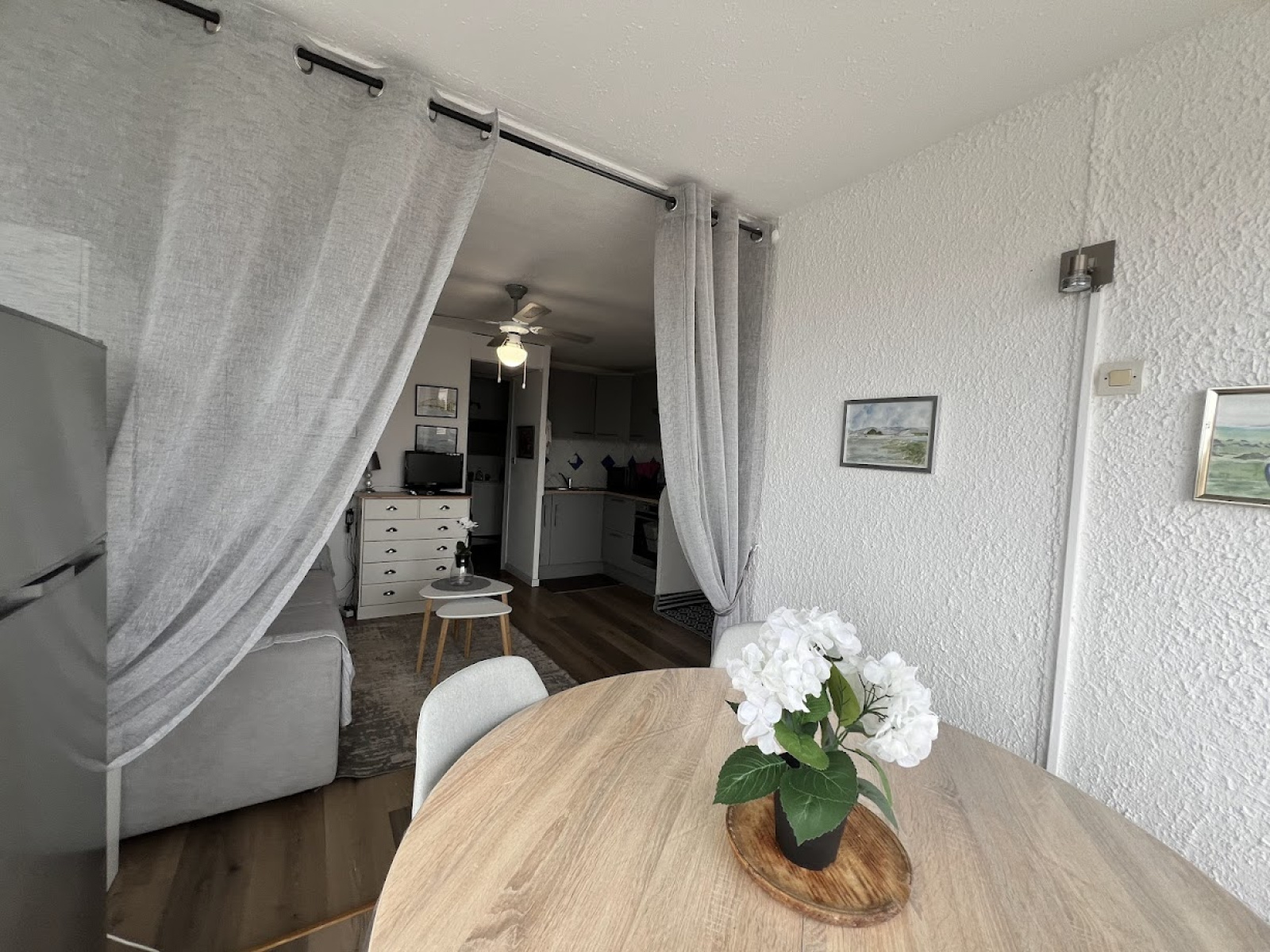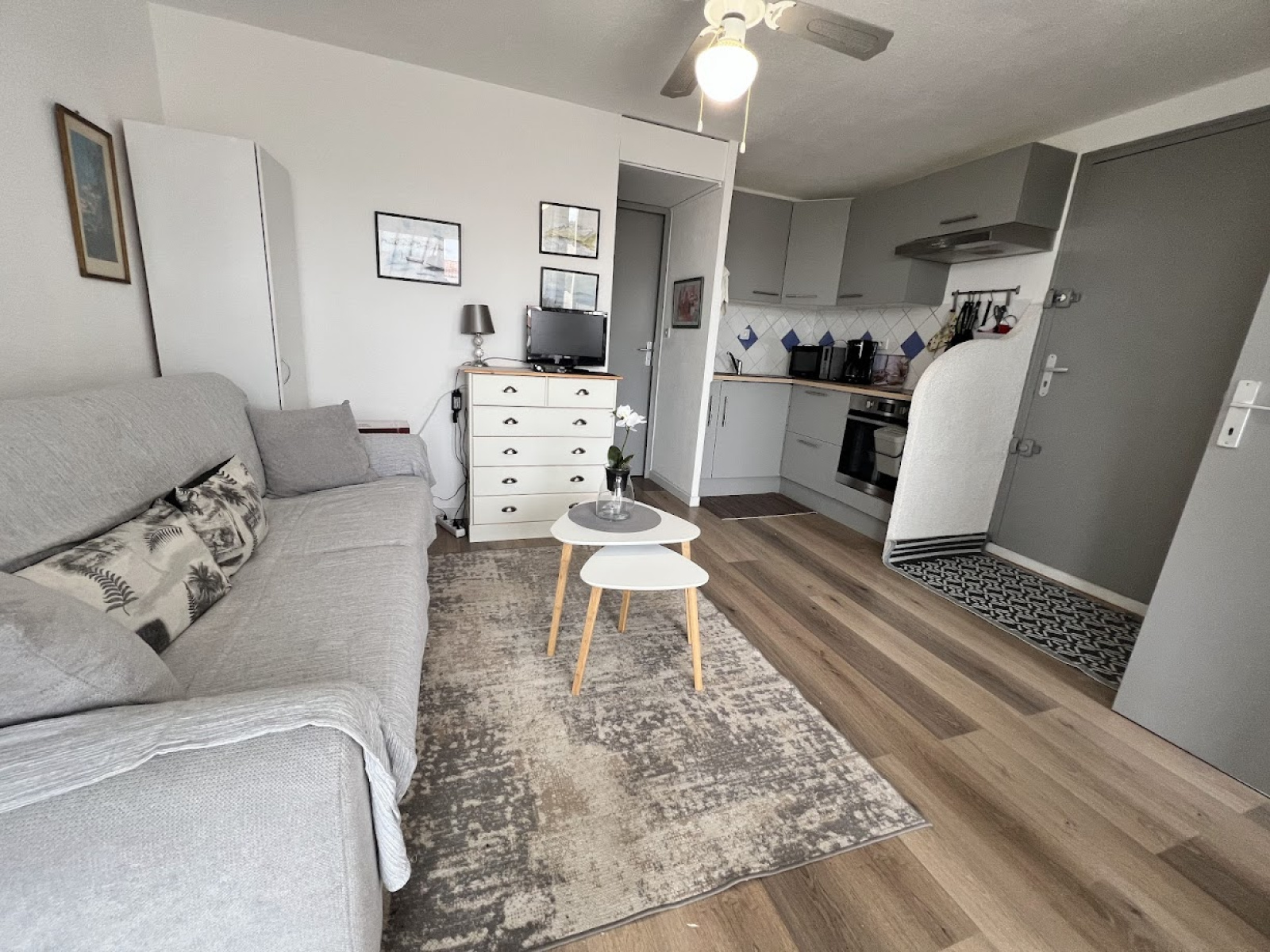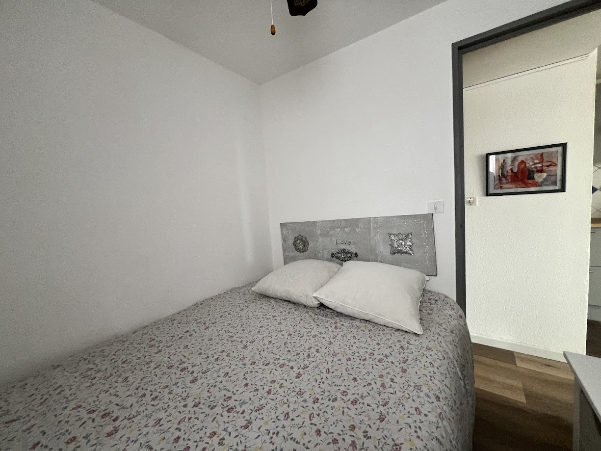 Vous trouverez deux chambres séparées, un séjour fonctionnel et une cuisine équipée (plaques vitrocéramiques, four, micro-ondes, réfrigérateur-congélateur, cafetière, ustensiles et vaisselle complets). La salle d’eau dispose d’une douche, d’un lavabo et d’un WC.