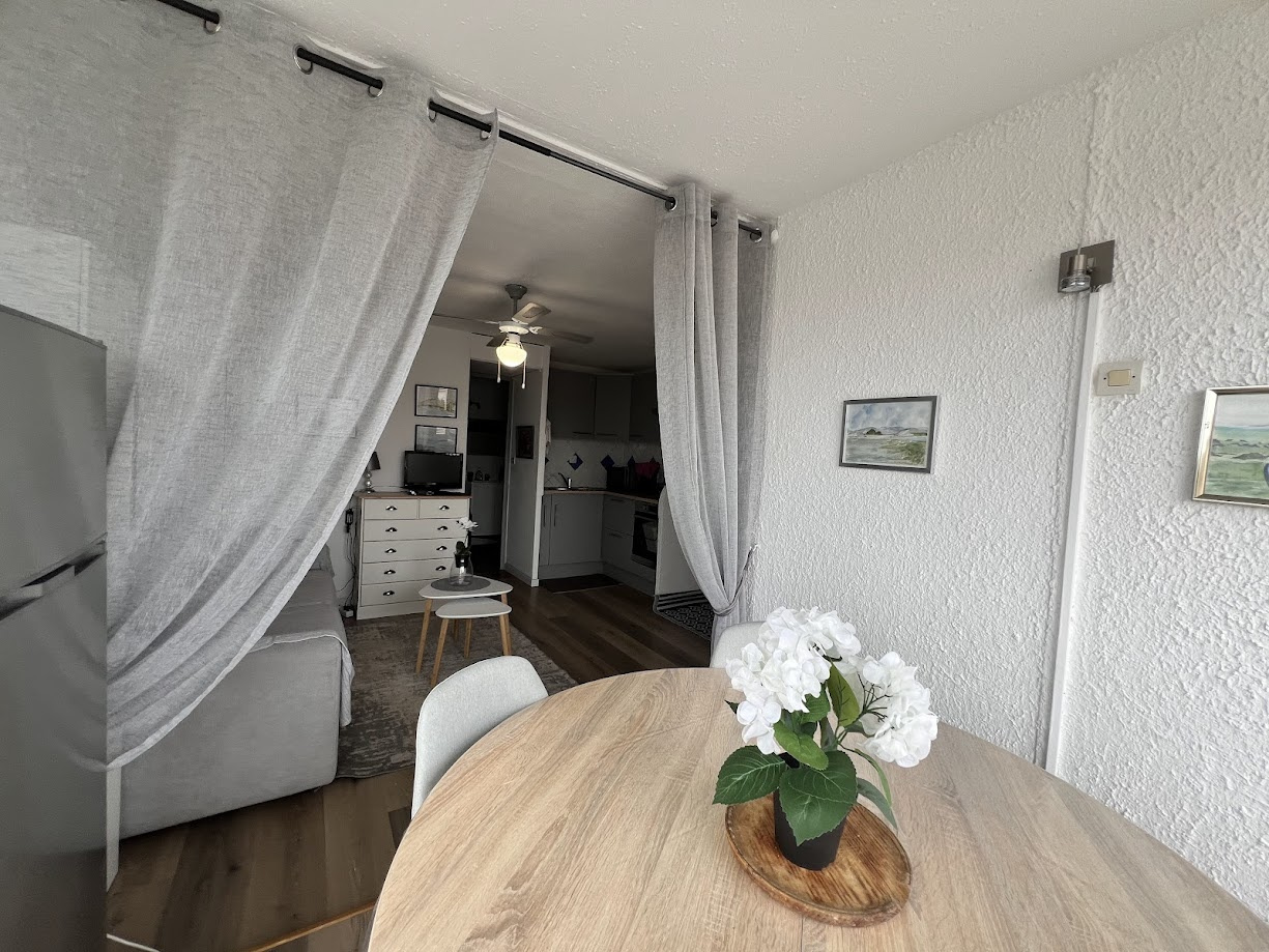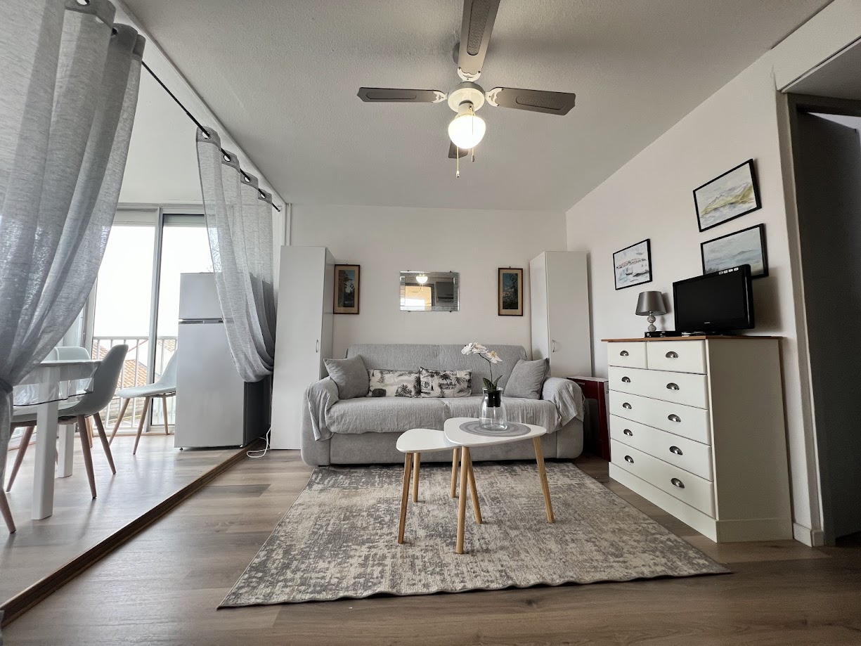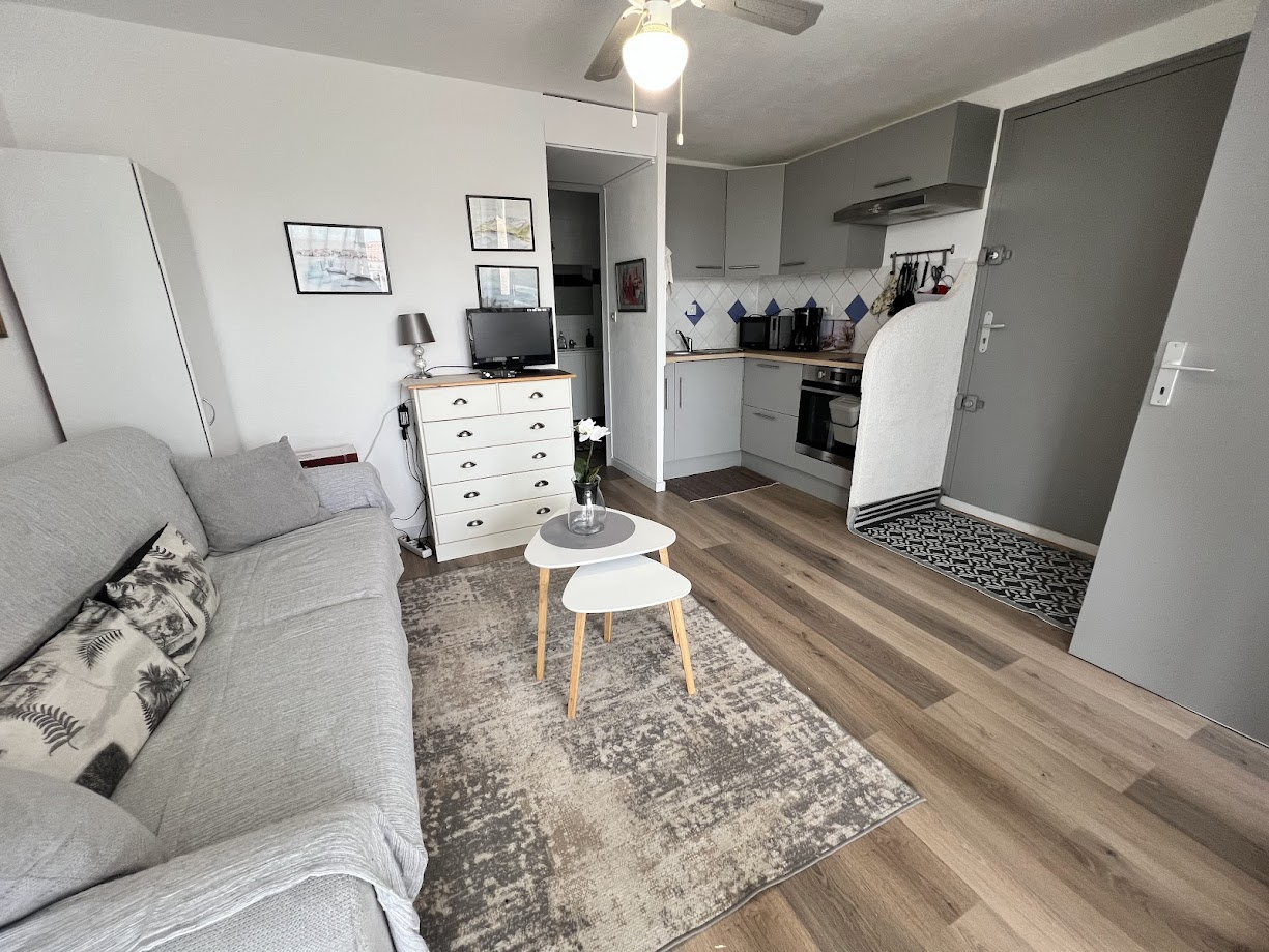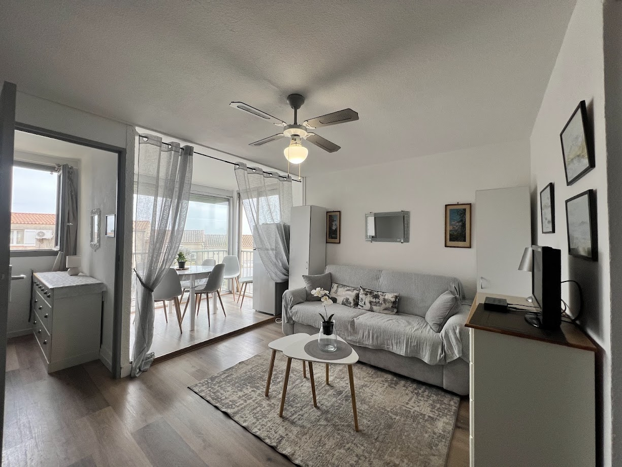 Situé au 1er étage , cet appartement lumineux, exposé plein sud, accueille jusqu’à 4 personnes. Idéal pour un séjour en bord de mer, il offre confort et praticité dans une résidence à proximité du massif de la Clape