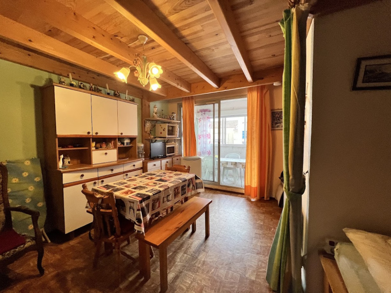 Situé au dessus du port et des commerces, appartement au 1er et dernier étage, il se compose d'un séjour avec coin cuisine séparé un coin cabine, salle d'eau avec douche et wc, et à l'étage une mezzanine avec 4 couchages parking vendu meublé loggia fermée avec véranda prévoir un rafraichissement surface 20,44 m2 carrez +17,17 m2 hors carrez (loggia +mezzanine) plage et commerce à proximité