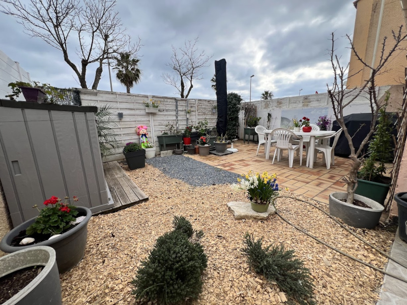 Situé dans une résidence en bord de garrigue sur les hauteurs de St Pierre la Mer, ce pavillon se compose d'un séjour avec coin salon cabine, salle d'eau avec douche et wc incorporé, une chambre mansardée à l'étage avec fenêtre. Terrasse avec cellier privé et parking devant la maison.  Piscine terrain de pétanque env 800 m de la plage  et du marché vendu en partie meublé
