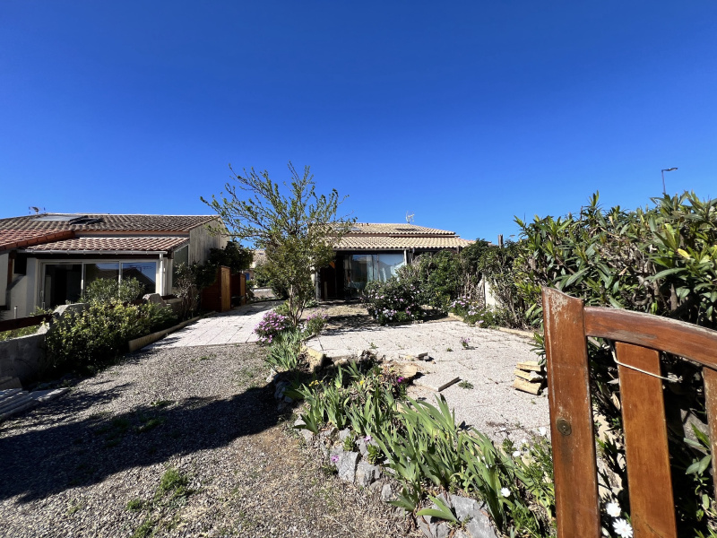 Cette Villa avec jardin de 170 m2 vue sur la mer, 3 faces et mitoyenne d'un seul côté, se compose d'un séjour avec kitchenette, une chambre en rez de chaussée, salle d'eau avec wc et fenêtre, et à l'étage une grande mezzanine haute et avec fenêtre qui peut être agrandie