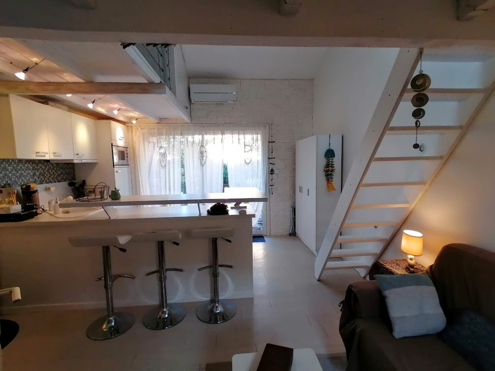 Situé dans une résidence sur les hauts de St Pierre, avec piscine collective, ce pavillon a été entièrement réaménagé, il se compose d'un coin cuisine américaine avec ilot central tout équipé, coin salon, une salle d'eau avec wc, et à l'étage une grande mezzanine haute (+6,67 m2 hors carrez) avec fenêtre et velux, climatisation reversible, le tout en parfait état. Il est vendu en partie meublé.