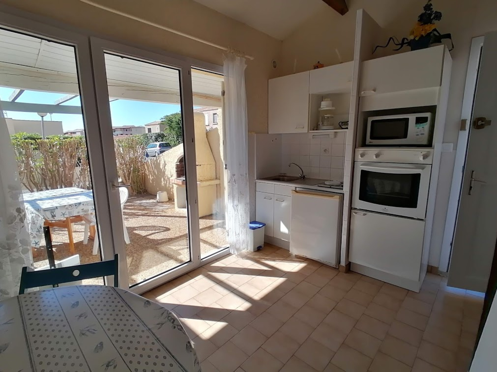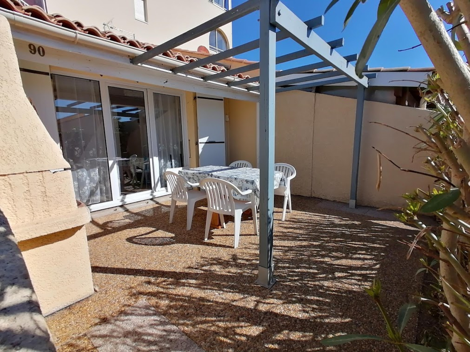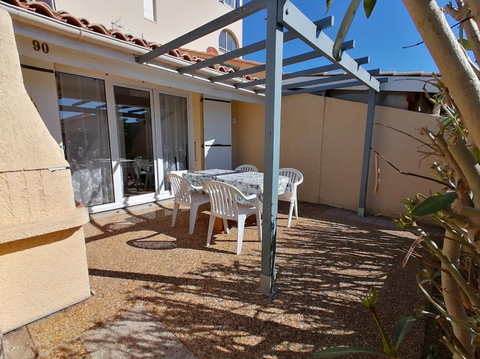 Terrasse cloturée avec pergola, barbecue, parking privé piscine dans la résidence env 600 m de la plage
