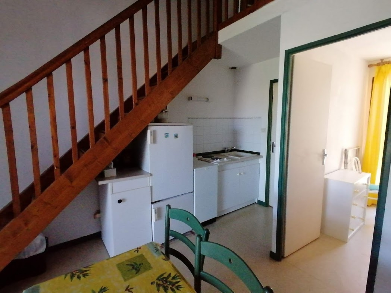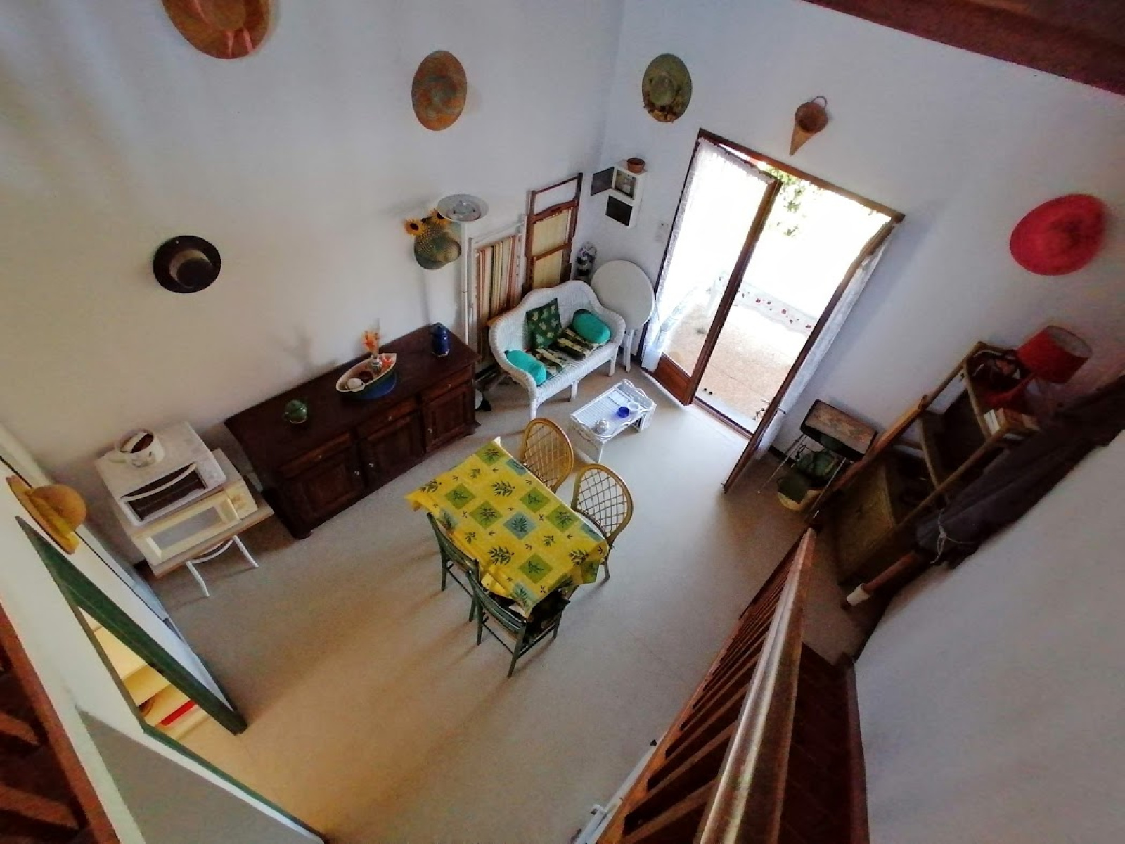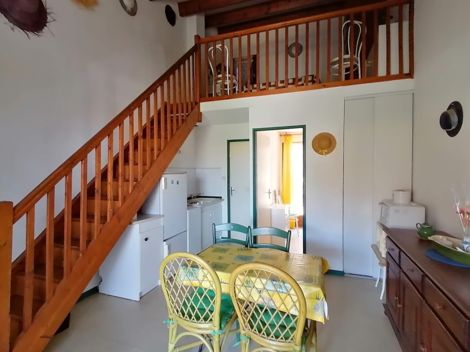 Dans une résidence sur les hauts de St Pierre, pavillon traversant composé d'un séjour cuisine, salle d'eau avec douche et wc avec fenêtre, une chambre avec accès sur cour, et à l'étage une grande mezzanine haute et avec fenêtre.