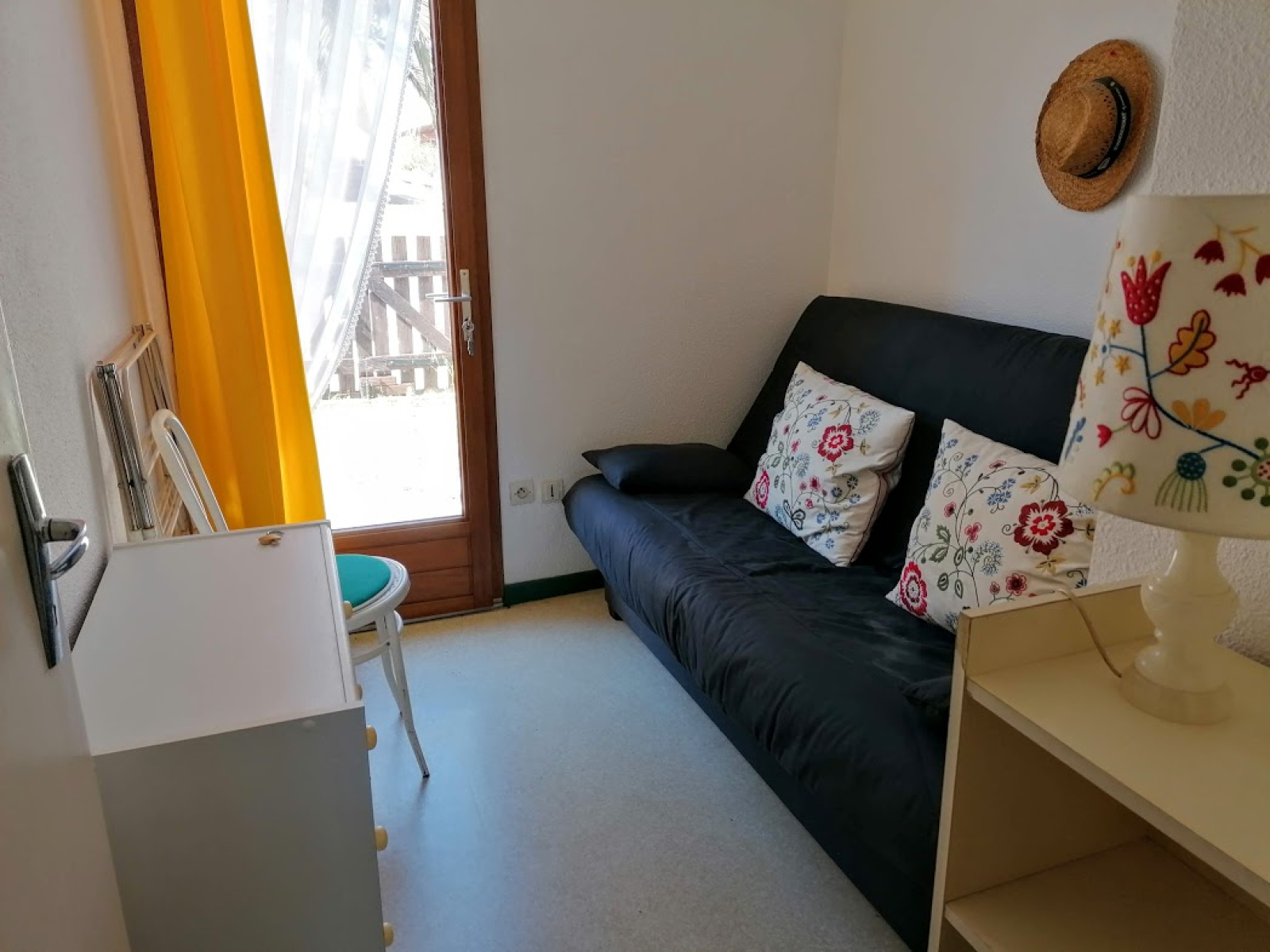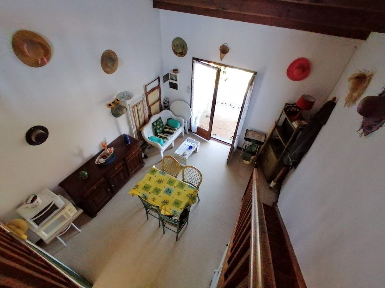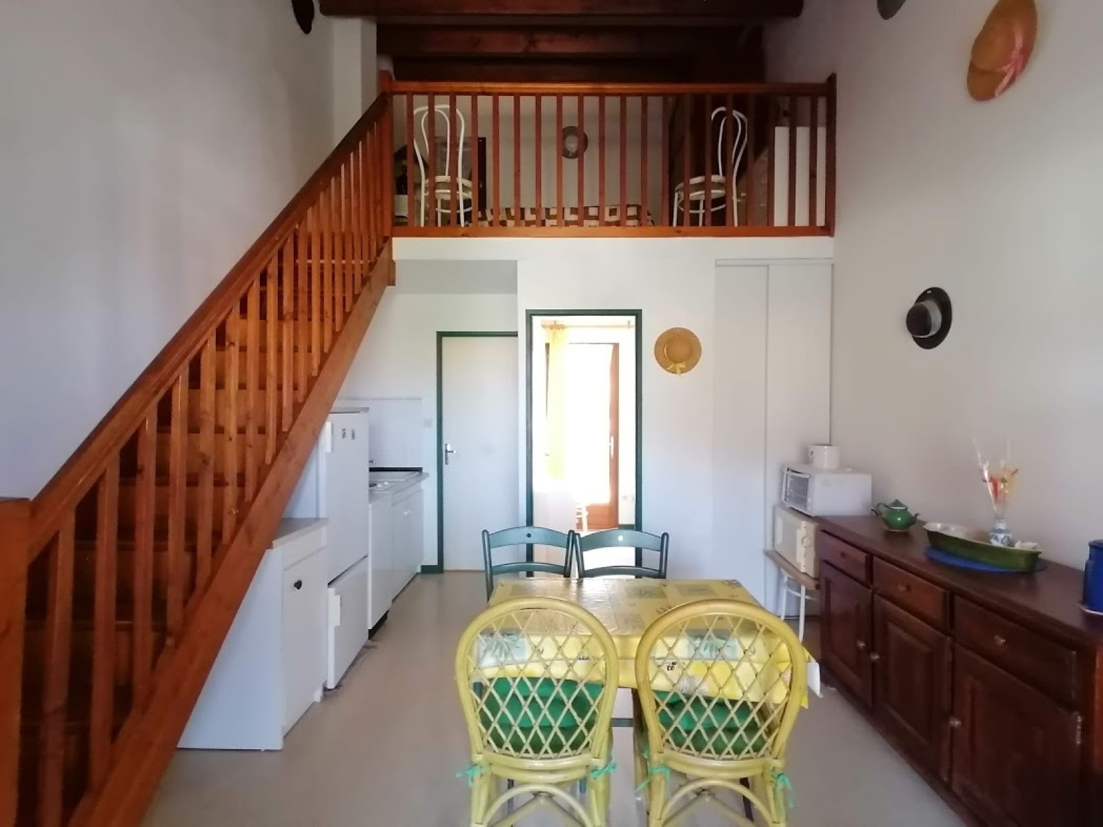 Dans une résidence sur les hauts de St Pierre, pavillon traversant composé d'un séjour cuisine, salle d'eau avec douche et wc avec fenêtre, une chambre avec accès sur cour, et à l'étage une grande mezzanine haute et avec fenêtre.