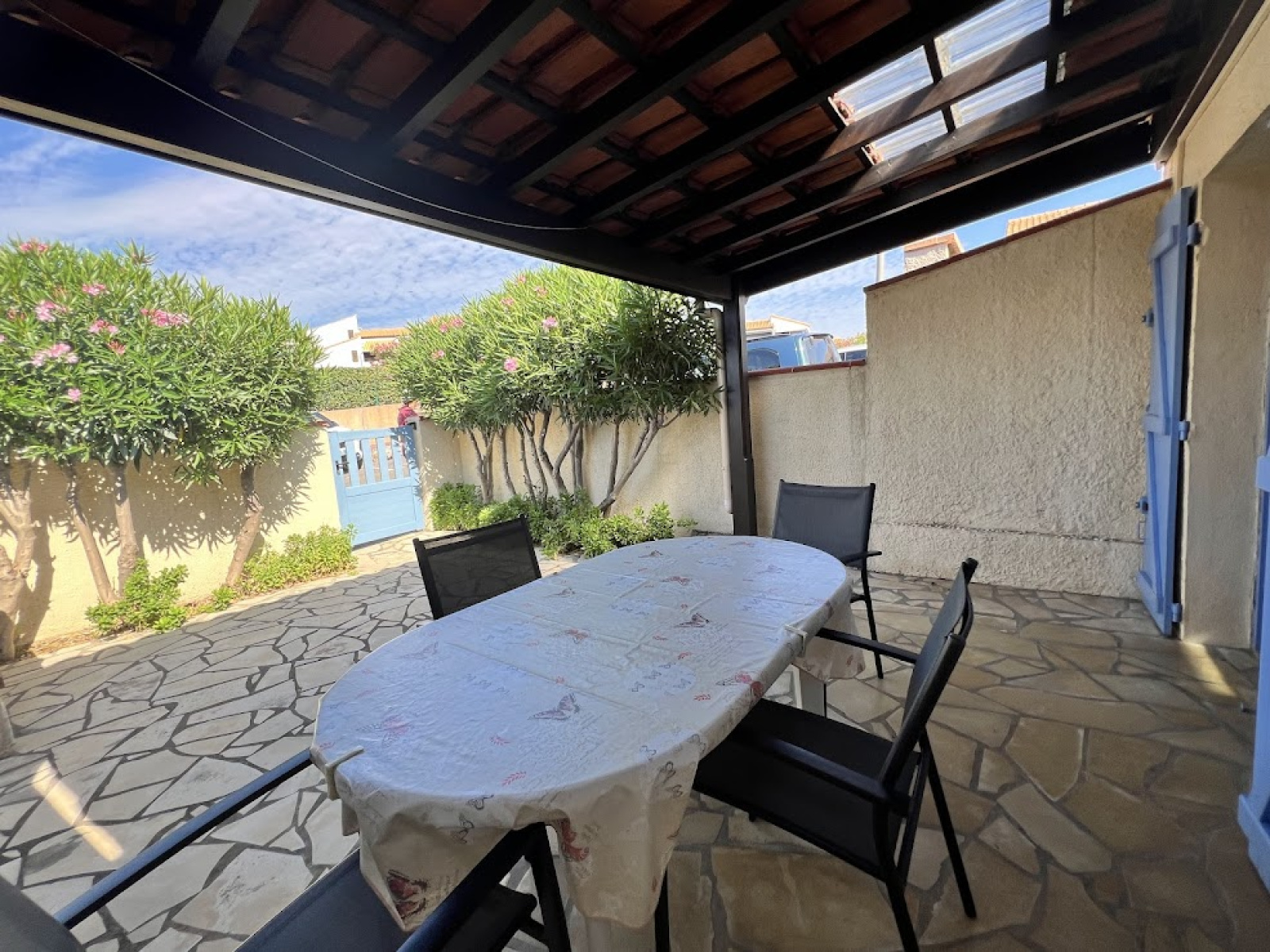 Terrasse arborée avec pergola de 27 m2, vendu meublé Climatisation réversible