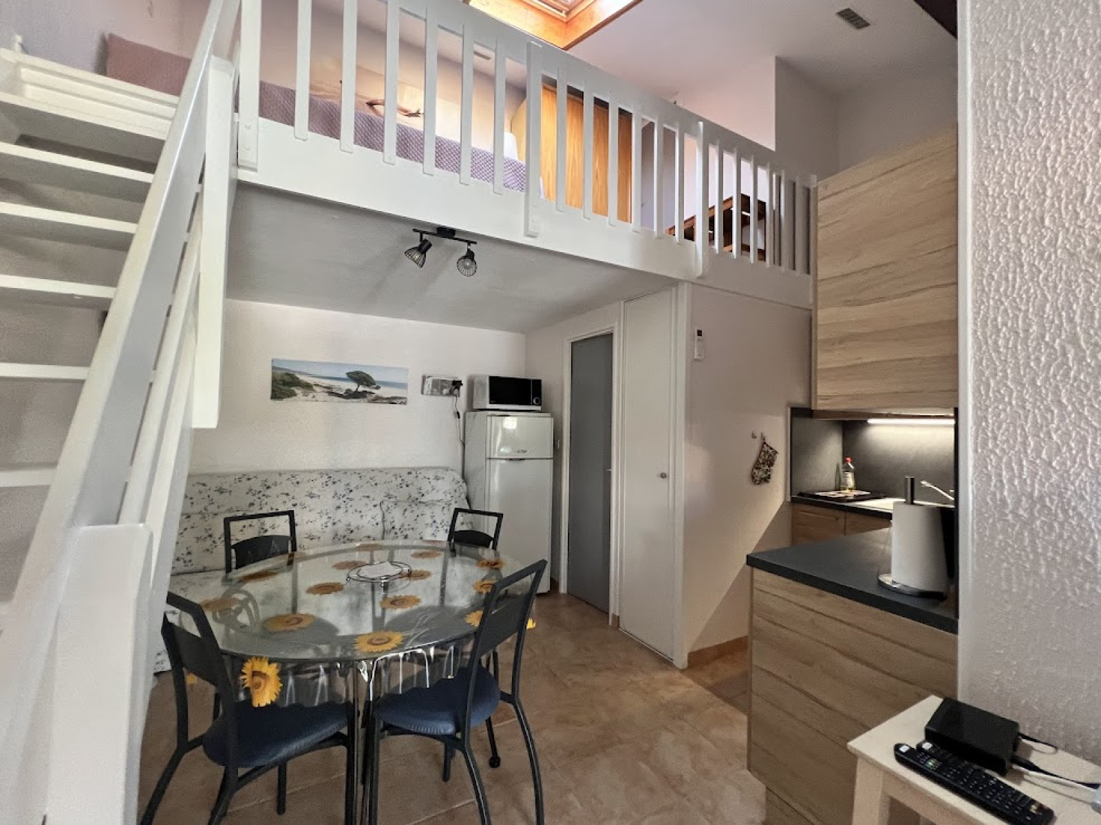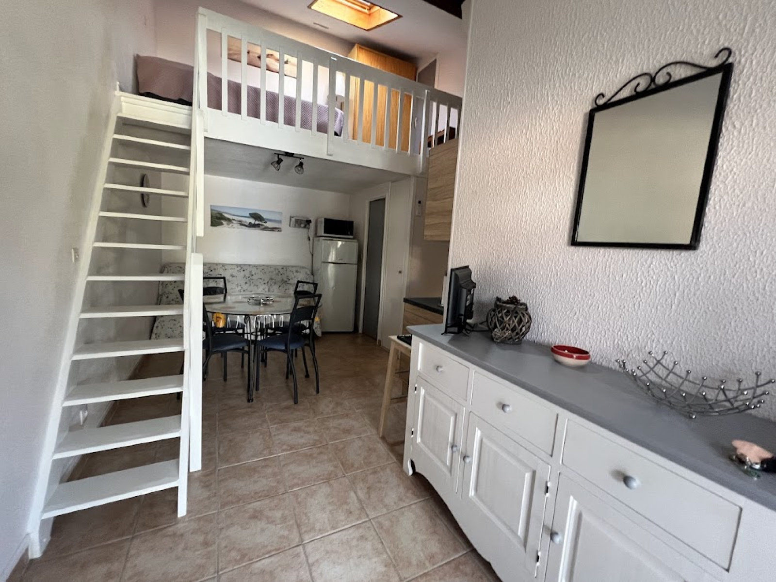 Situé dans une résidence avec piscine, ce pavillon entièrement rénové se compose d'un séjour avec coin cuisine tout équipé, une chambre, salle d'eau douche et wc, une mezzanine avec velux