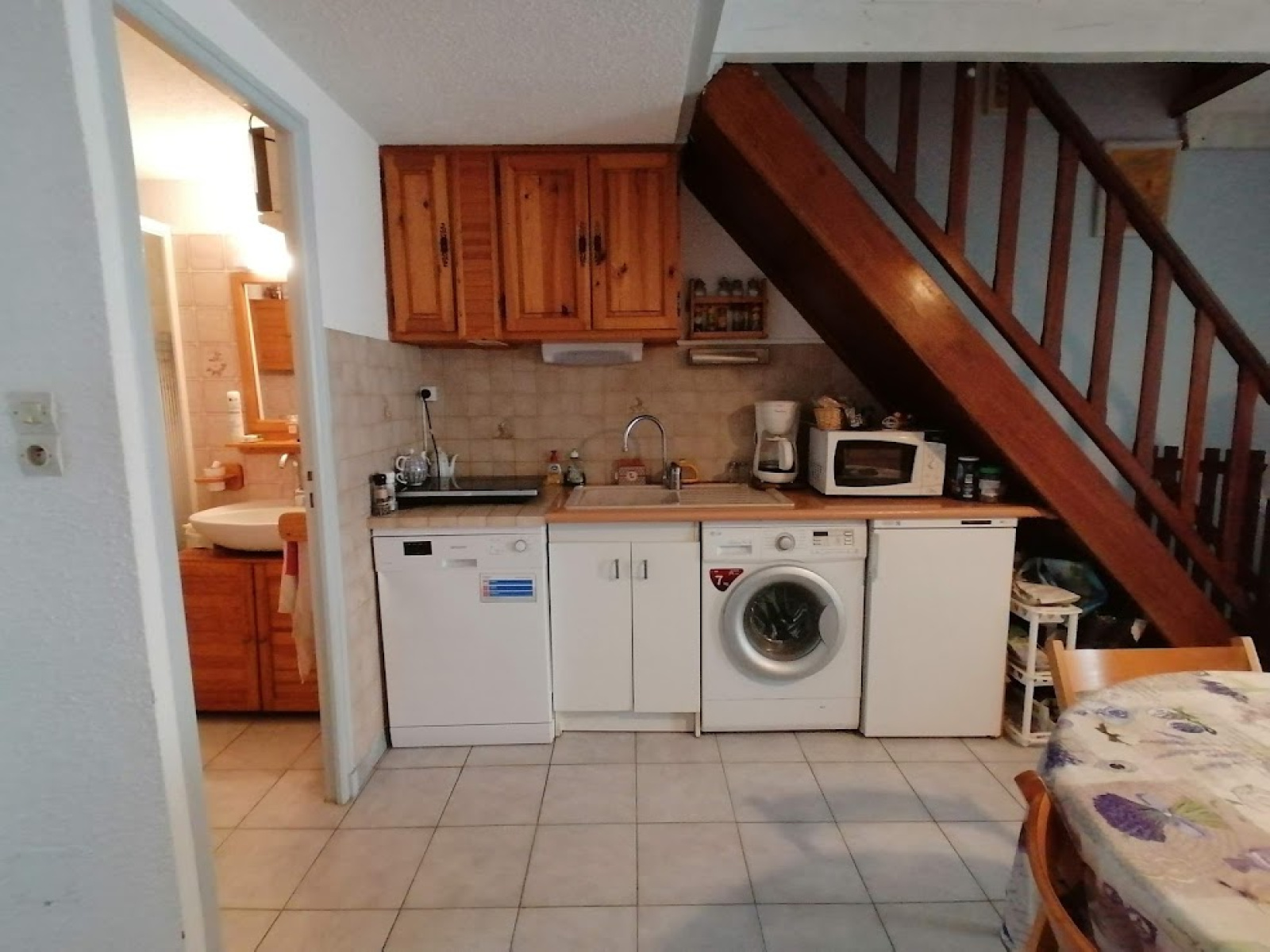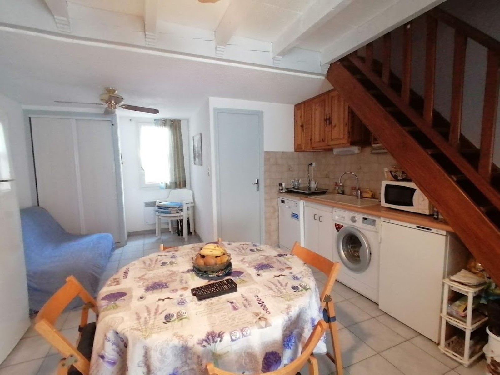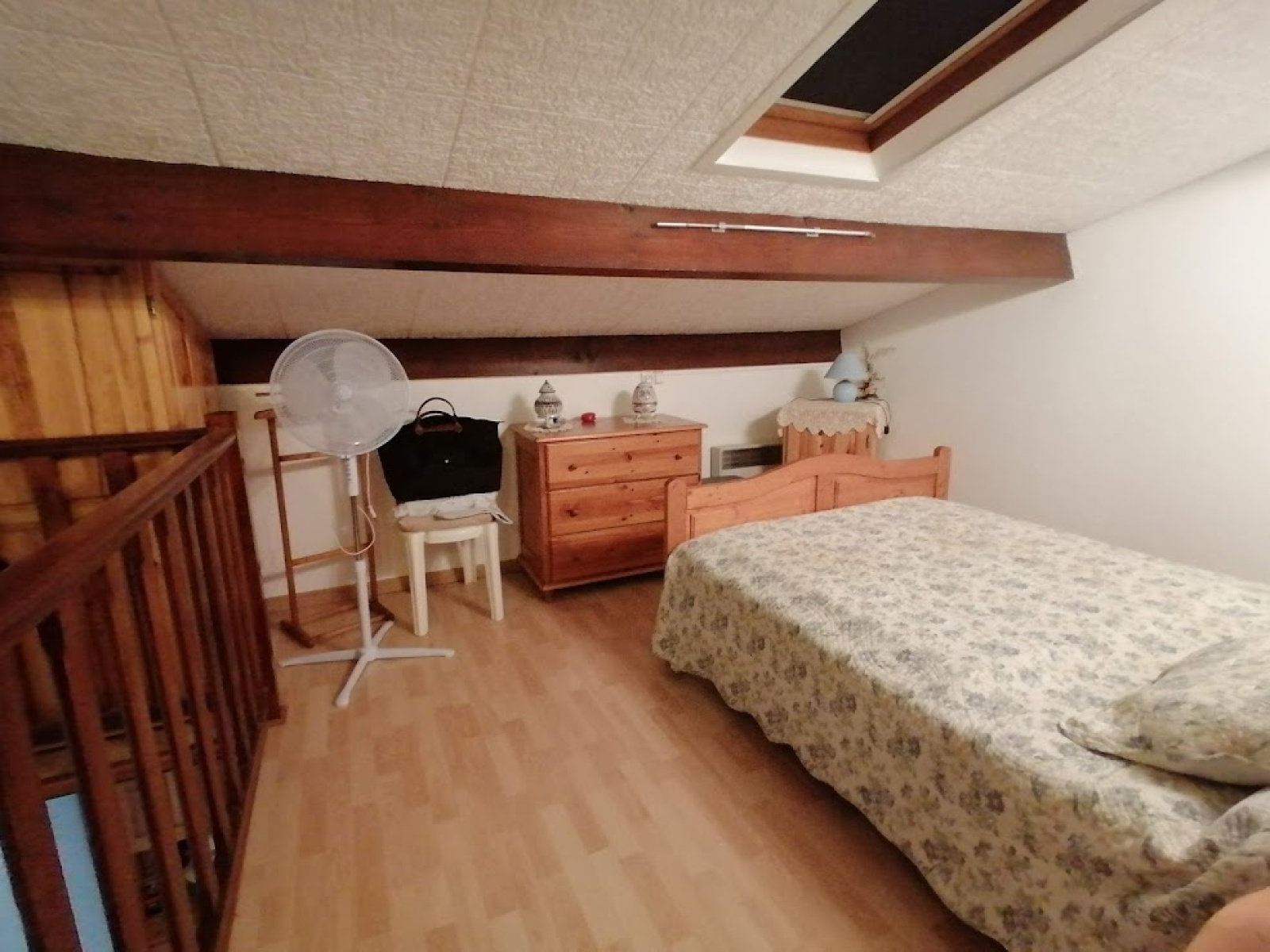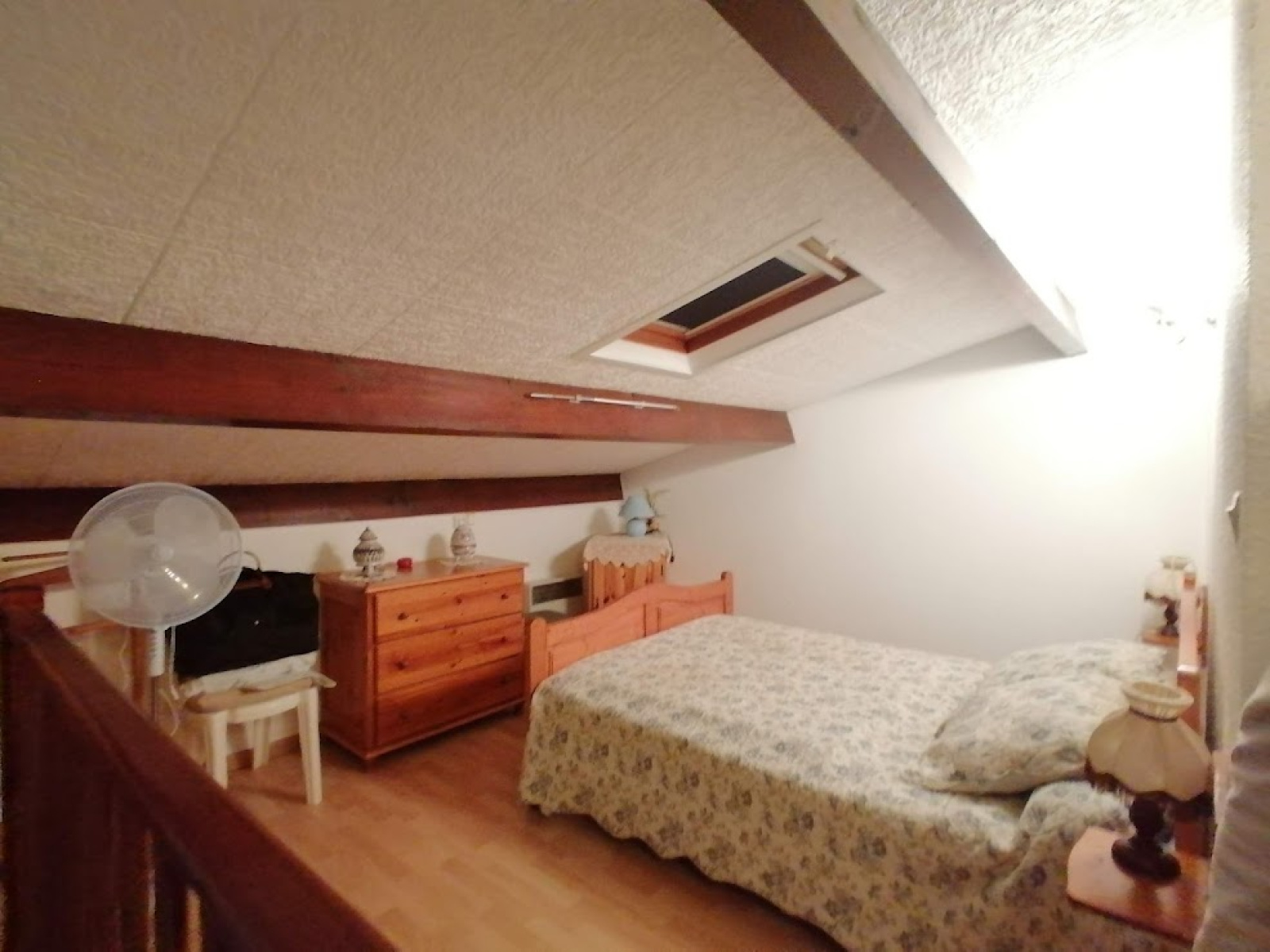 A l'étage, il y a 2 chambres et une grande mezzanine de 10m2 (dont une partie hors carrez) avec fenêtre de toit. Terrasse, parking privé et fermé.