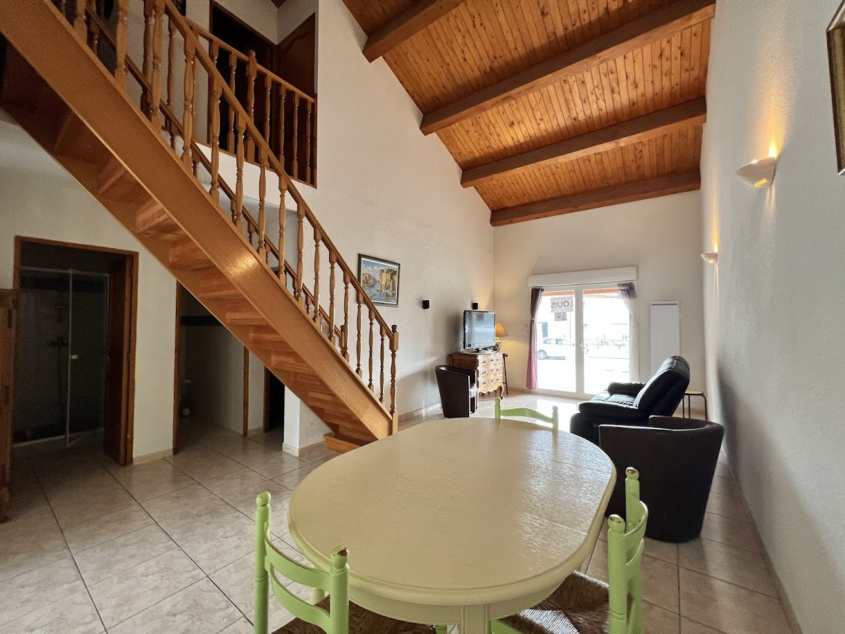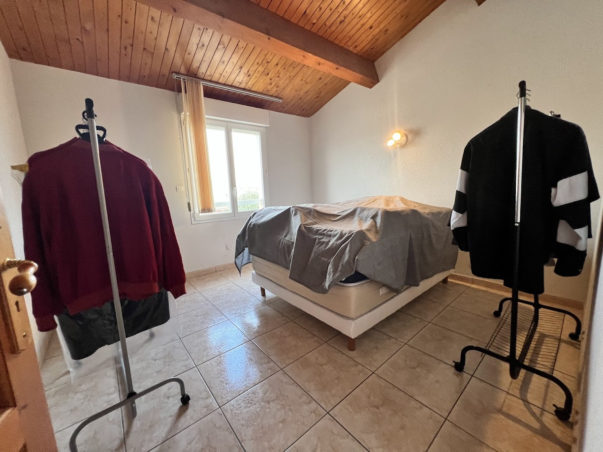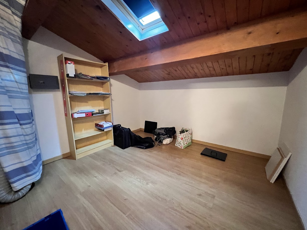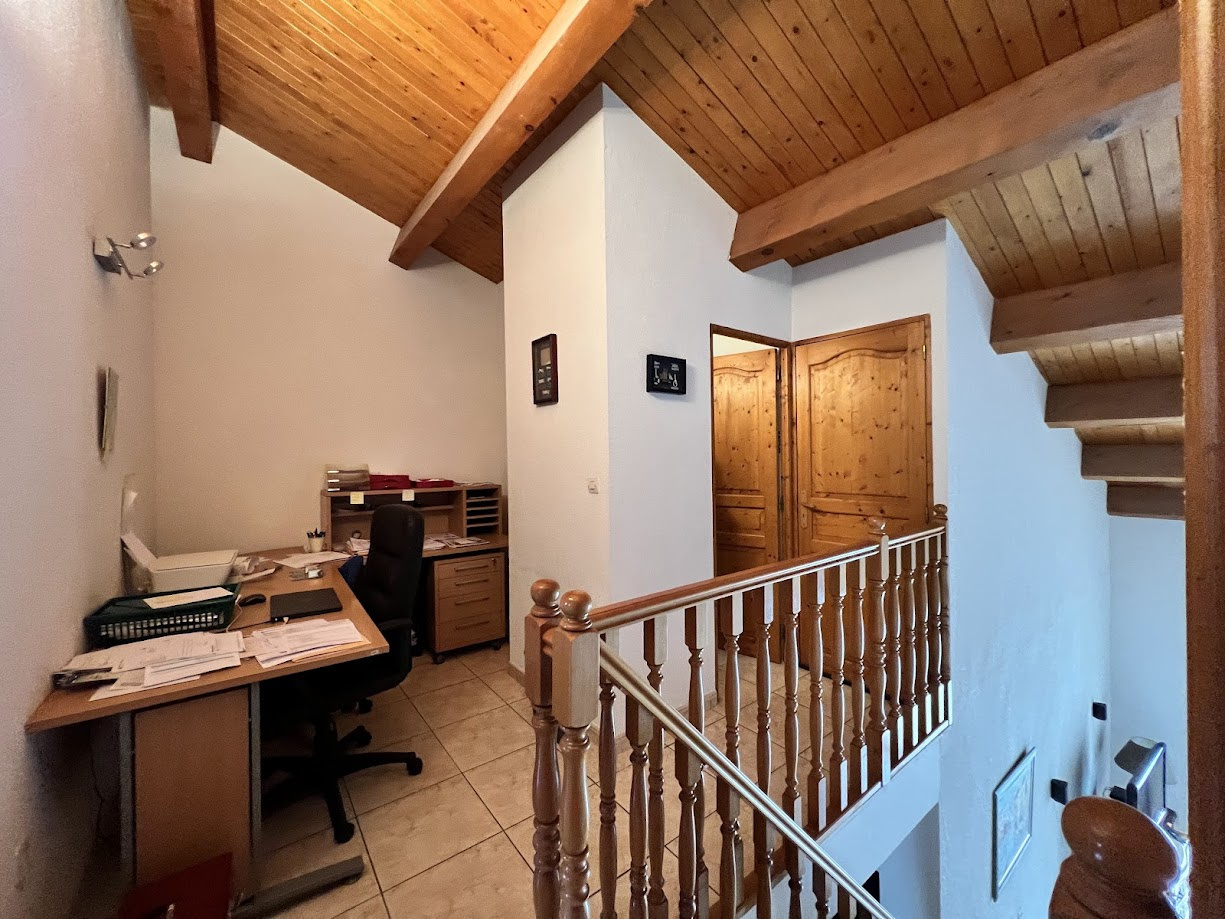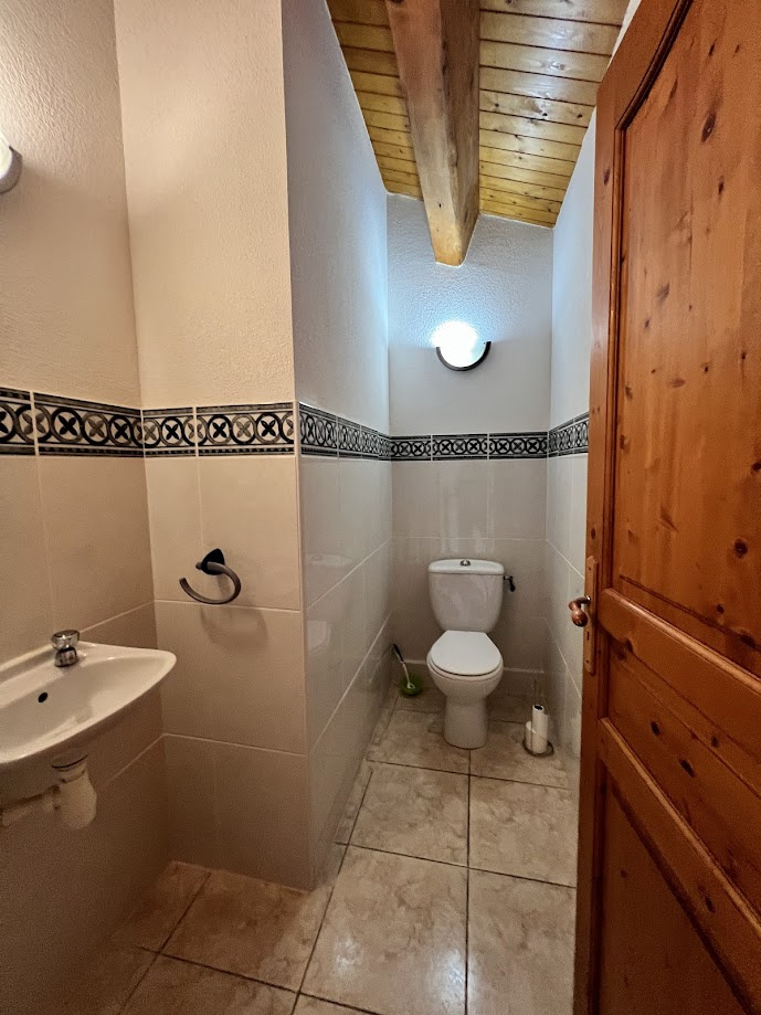 A l'étage, il y a 3 chambres dont une mansardée avec fenêtre de toit, un wc et un coin mezzanine.