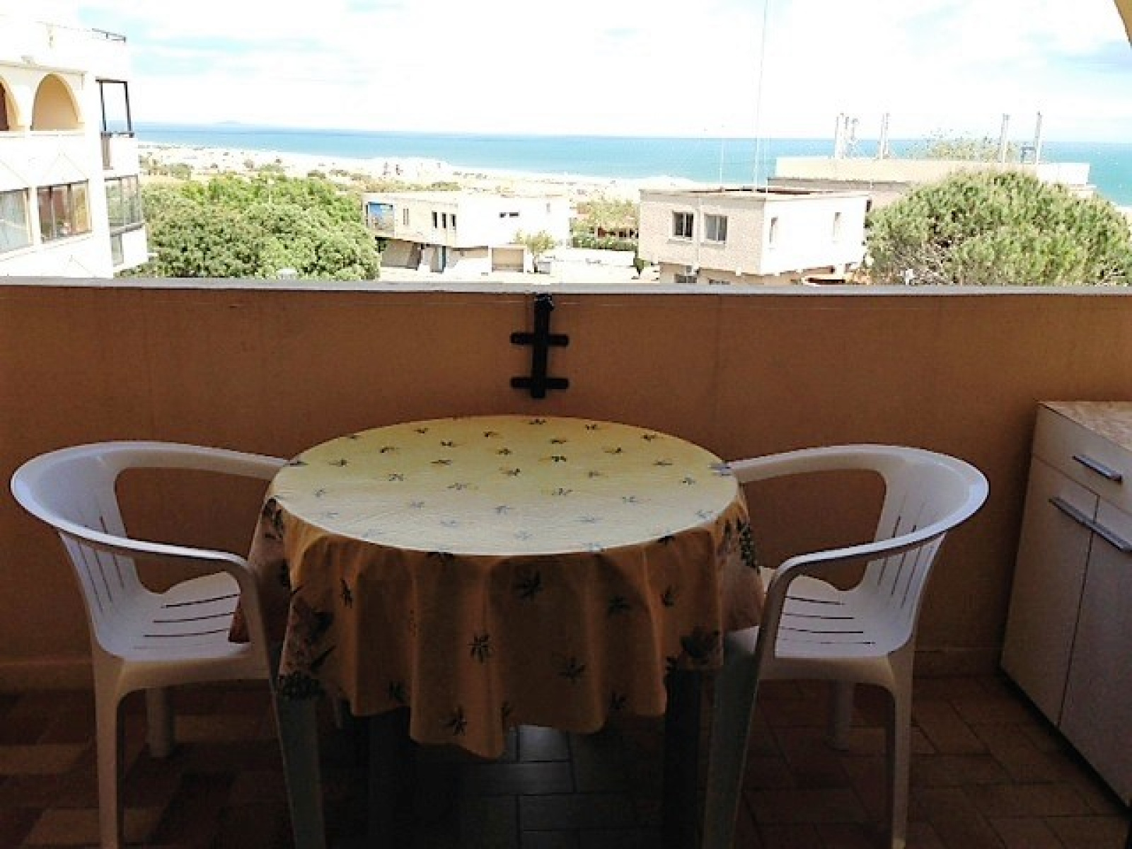 St Pierre la Mer, dans une résidence située à 5 mn de la plage et du centre, appartement 2 pièces avec terrasse vue sur la mer, il se compose d'un séjour cuisine, une chambre, salle d'eau et wc