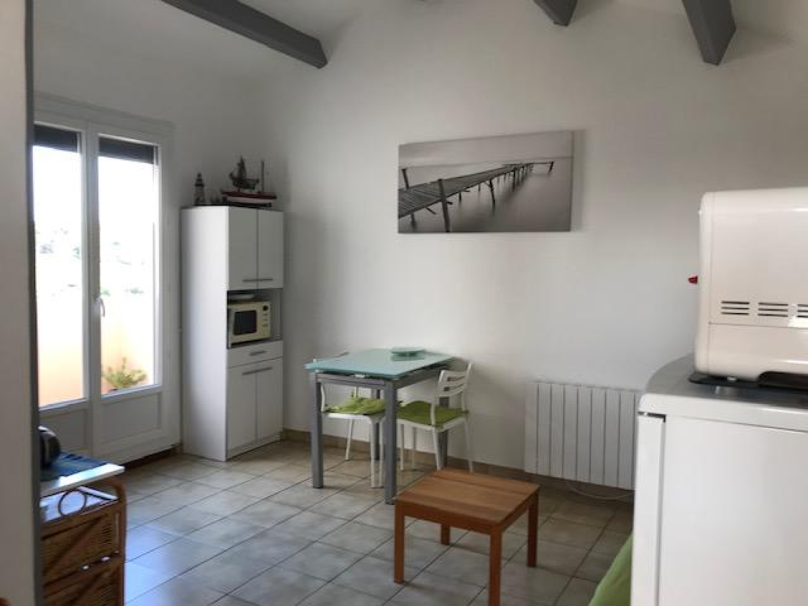 Il se compose d'un séjour, coin cuisine, salle d'eau avec douche à l'italienne et wc, balcon