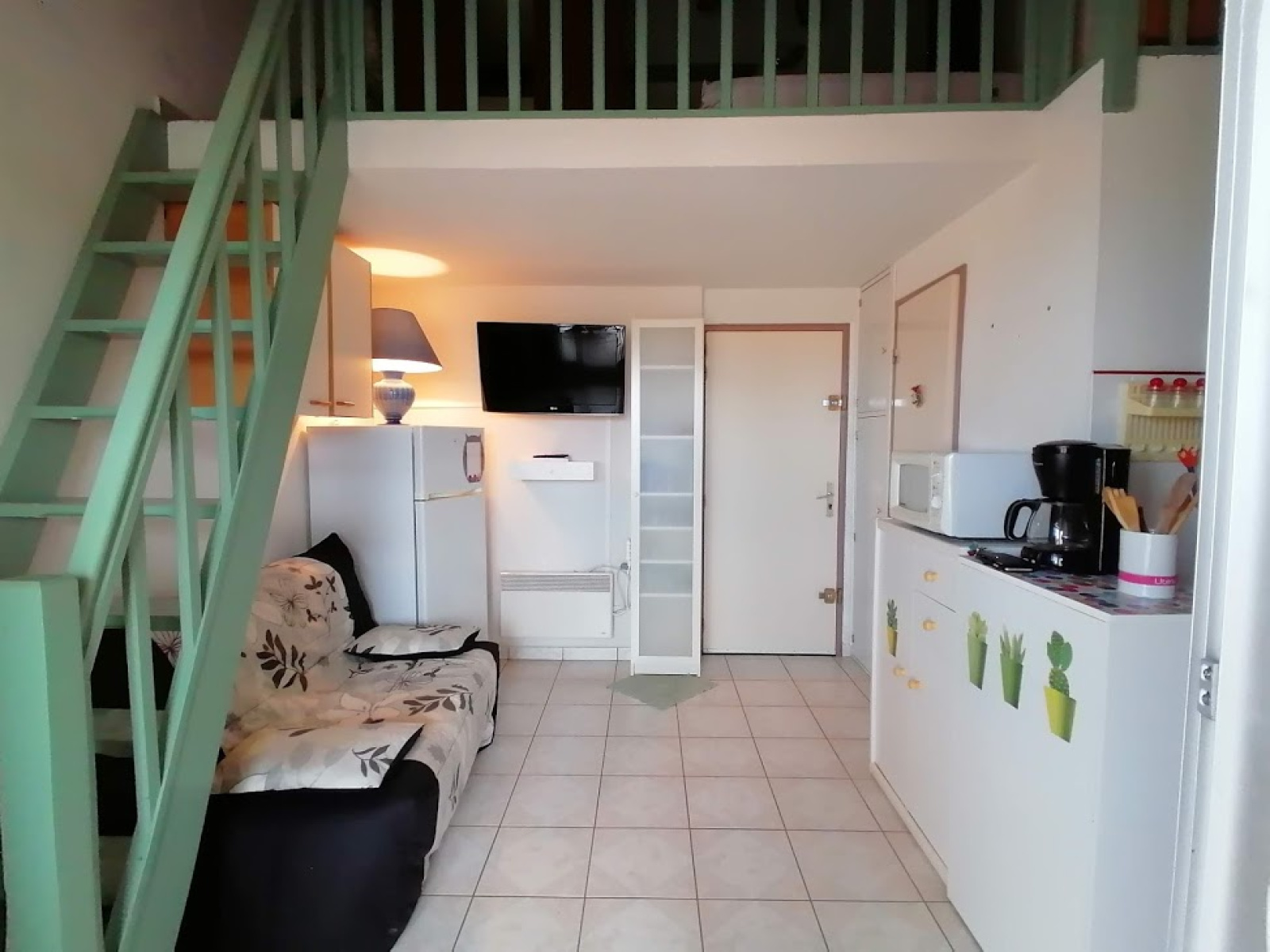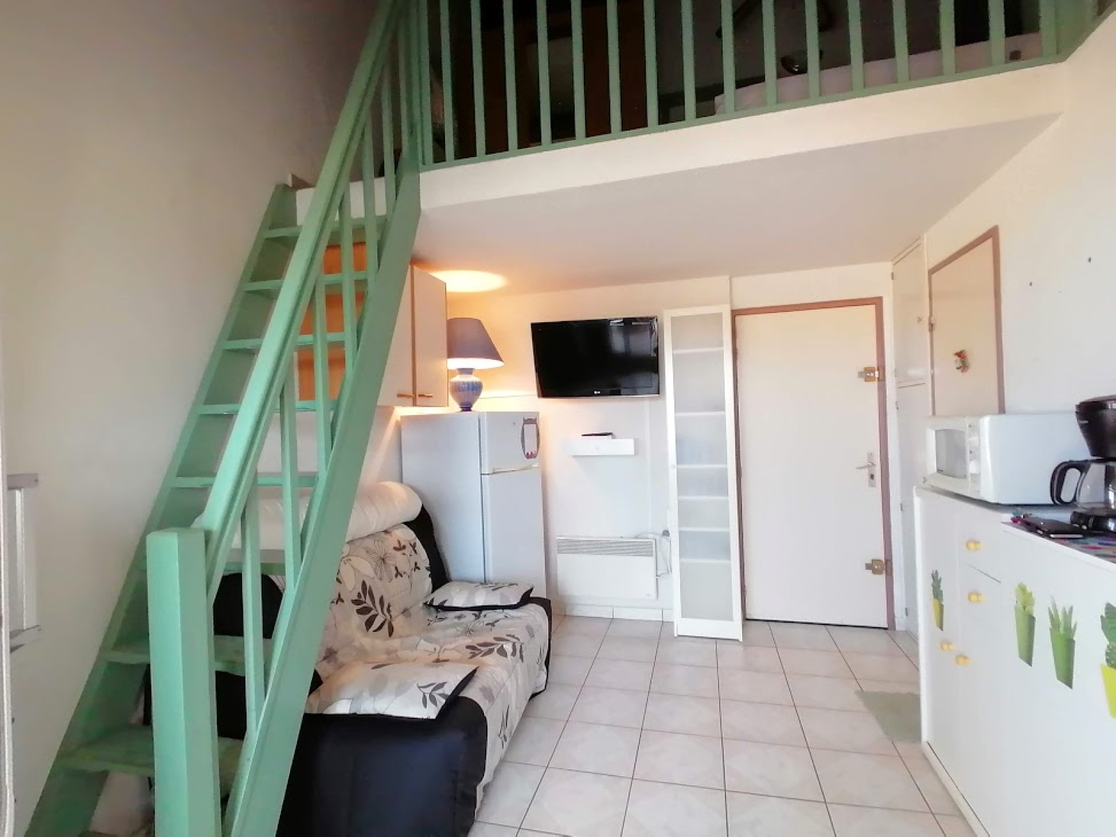Dans une résidence avec piscine et tennis, cet appartement se compose d'un séjour avec coin cuisine équipé, une loggia de 9.56 m2 fermée avec véranda, salle d'eau avec douche et wc, et une grande mezzanine haute avec fenêtre, il est vendu entièrement meublé