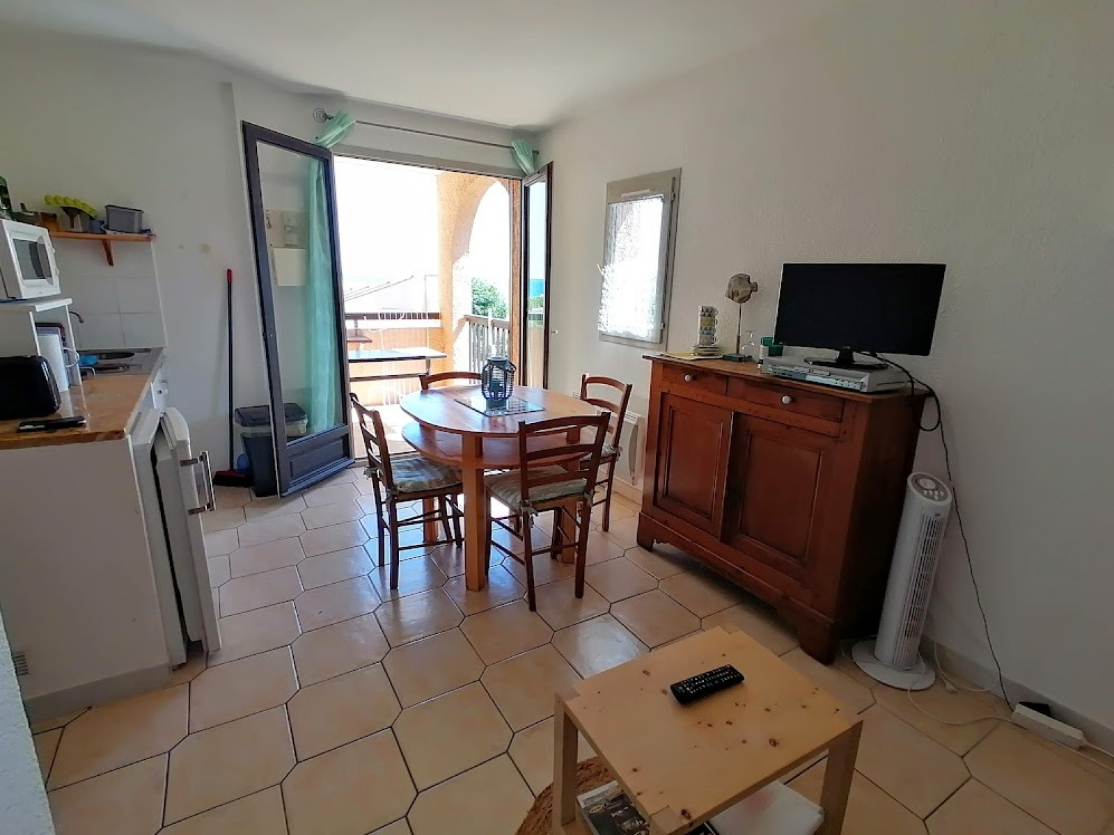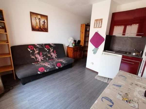 Dans une résidence située sur les hauts de ST Pierre la Mer, appartement 2 pièces au 1er étage, il se compose d'un séjour avec coin cuisine, une chambre, salle d'eau avec douche et wc , loggia avec vue sur la mer.