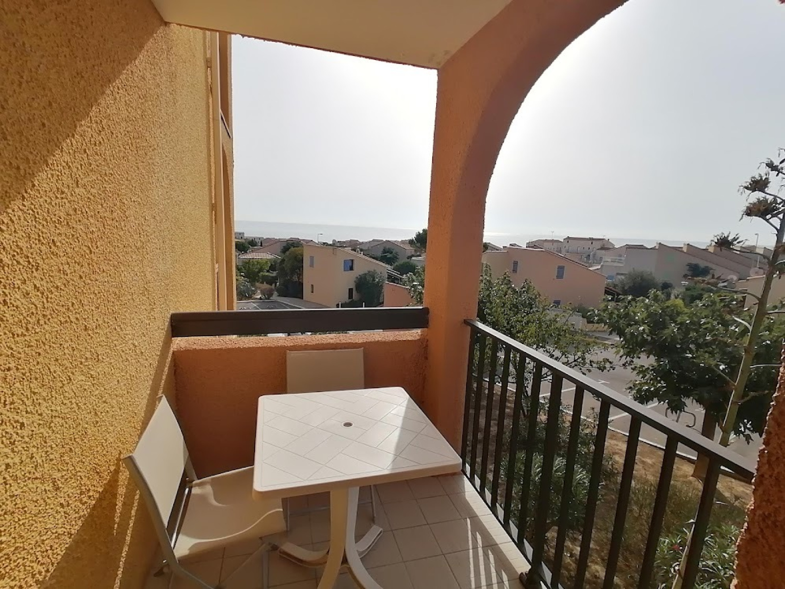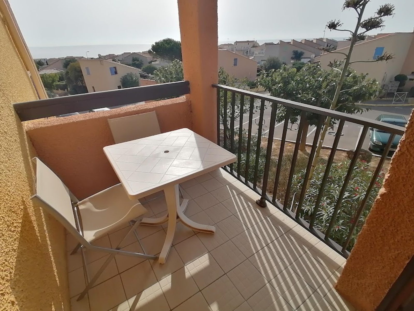 Dans une résidence sur les hauts de ST Pierre la Mer, appartement 2 Pièces avec terrasse vue sur la mer, il se compose d'un séjour avec coin cuisine équipé, une chambre, salle d'eau avec douche et wc incorporé.