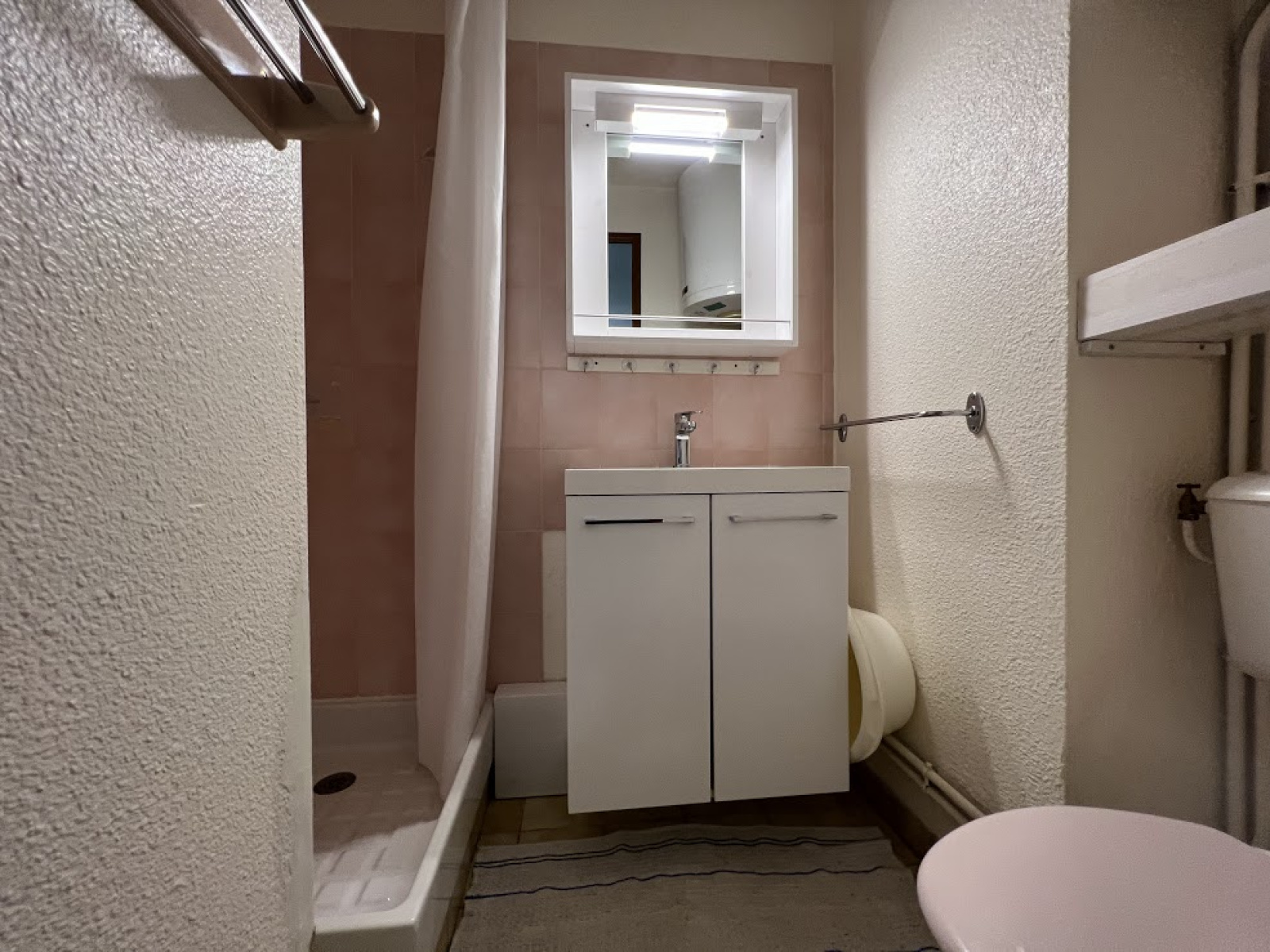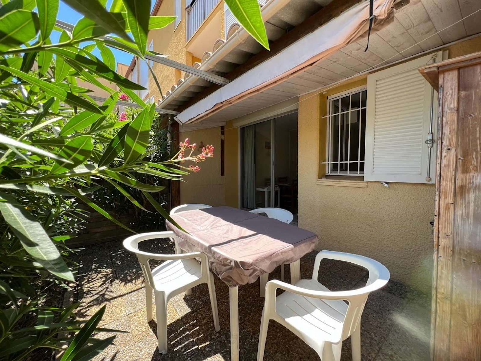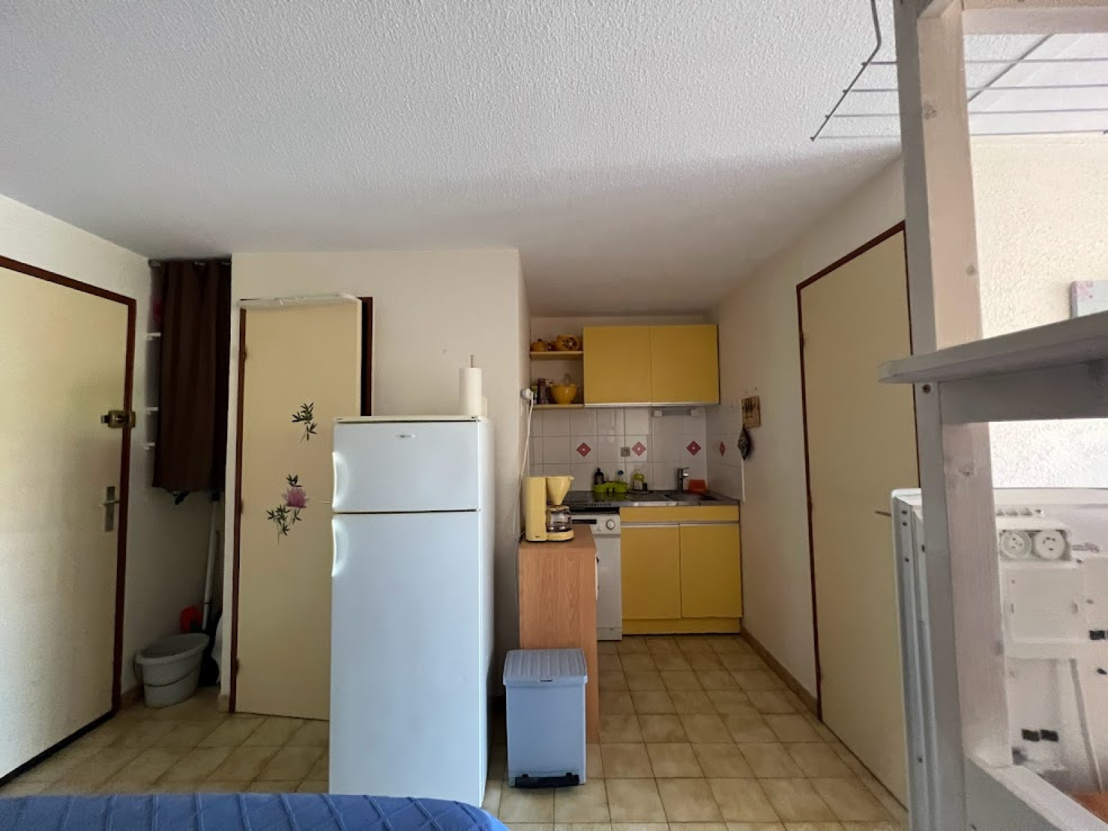 Dans une résidence avec piscine et tennis, situé à 600 m env de la plage et du marché, appartement en rez de jardin composé d'un séjour avec coin cuisine, salle d'eau avec douche et wc, une chambre.