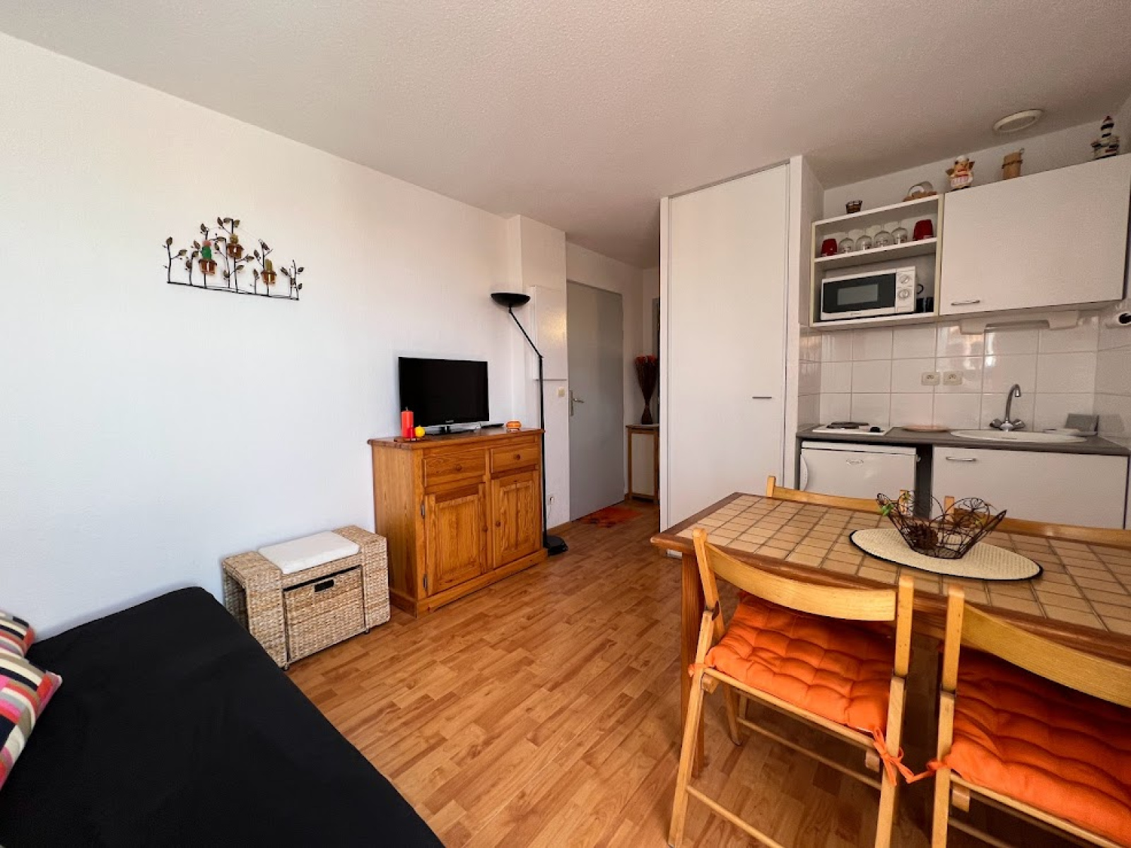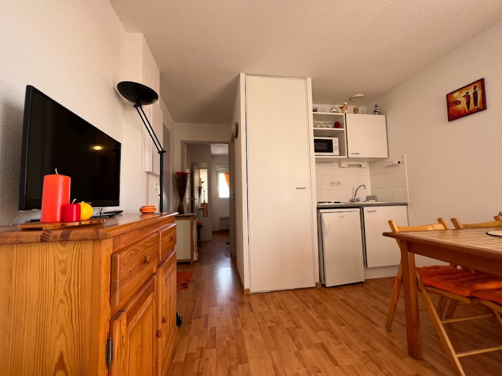 Dans une résidence située sur les hauts de St Pierre la Mer, appartement 2 pièces composé d'un séjour avec kitchenette, une chambre avec placards, salle d'eau et wc.