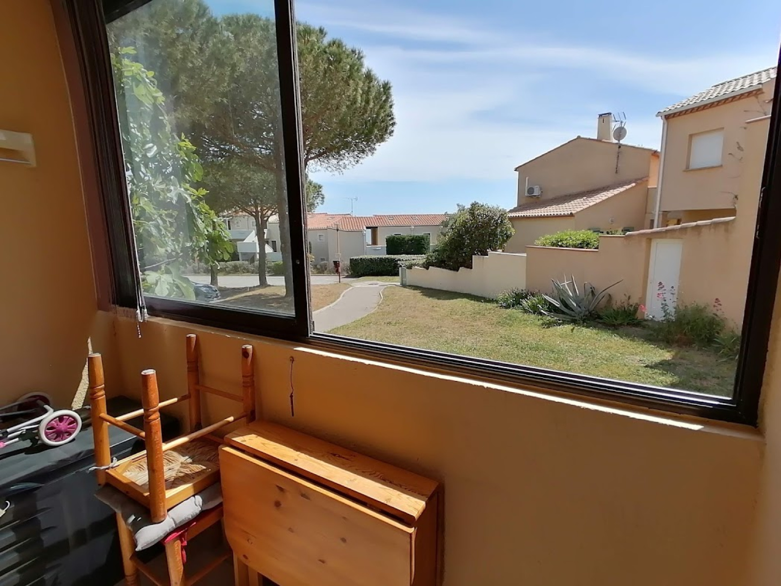 Dans une résidence proche du centre de St Pierre la mer et du marché, appartement en rez de chaussée composé d'un séjour cuisine, une chambre, salle d'eau avec douche et wc, terrasse avec loggia fermée.