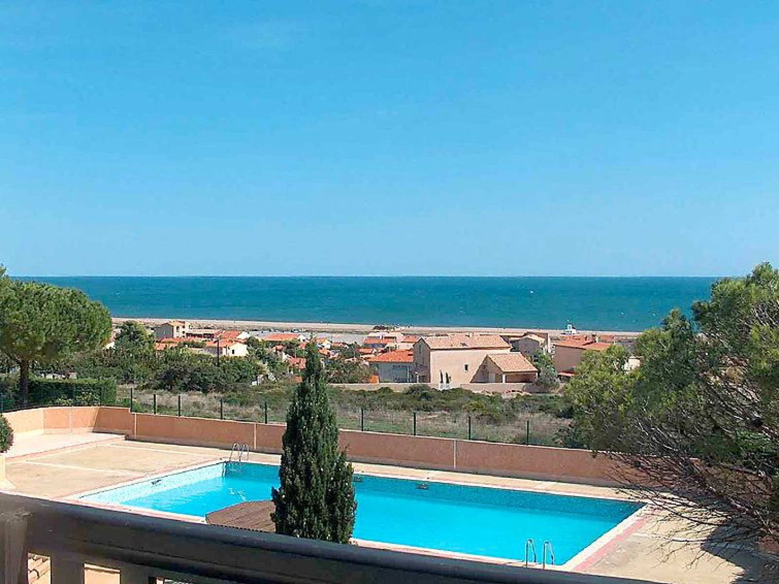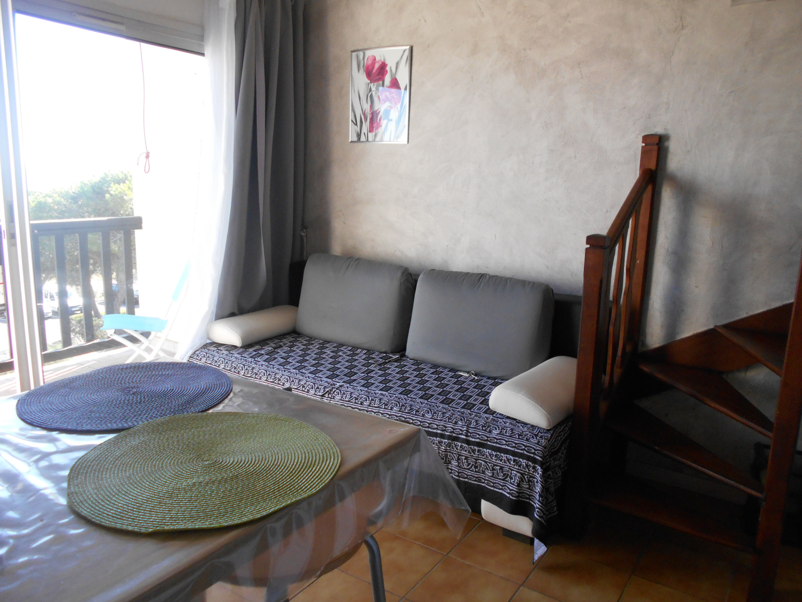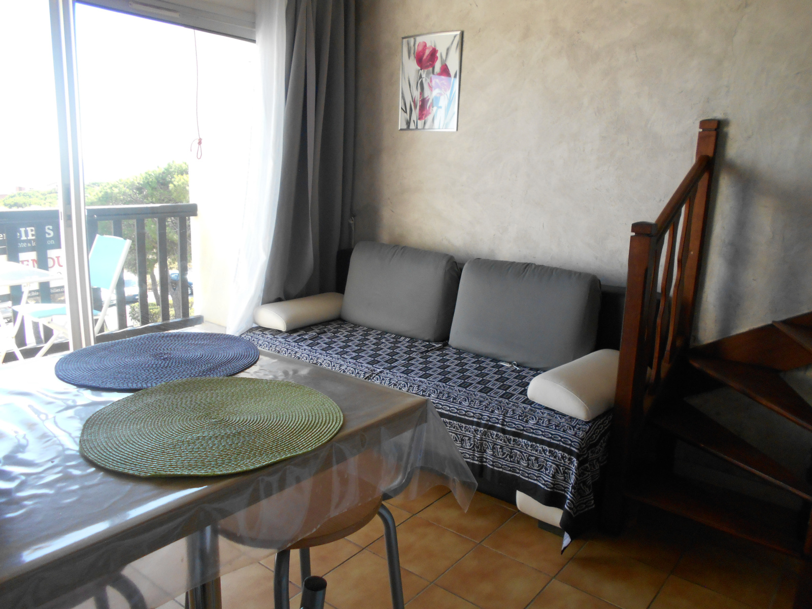 St Pierre la Mer, appt avec magnifique vue sur la mer et la piscine, il se compose d'un séjour cuisine, une chambre cabine, une mezzanine, nombreux rangements. Vendu tout équipé, parking et piscine privé