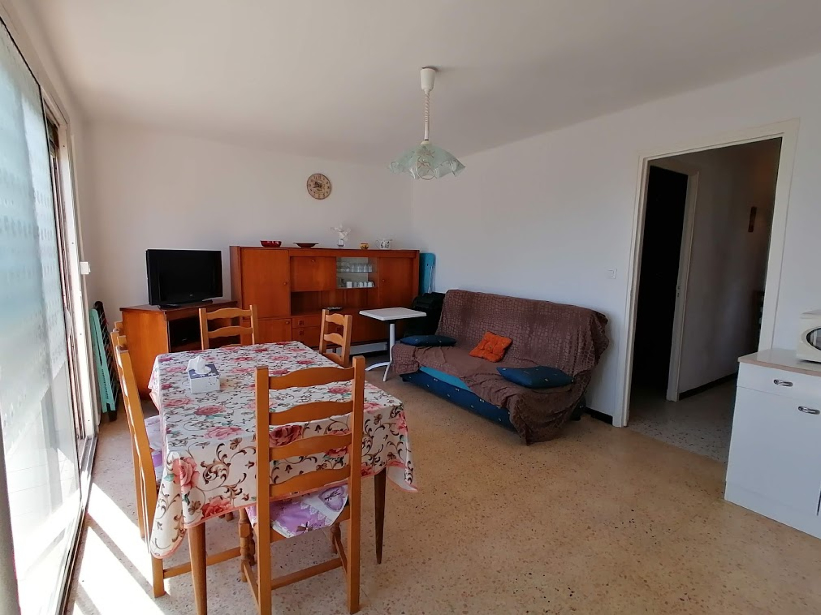 St Pierre la Mer, appartement 3 pièces en front de mer, il se compose d'un séjour avec cuisine entièrement équipée, deux chambres, salle d'eau et wc séparés.