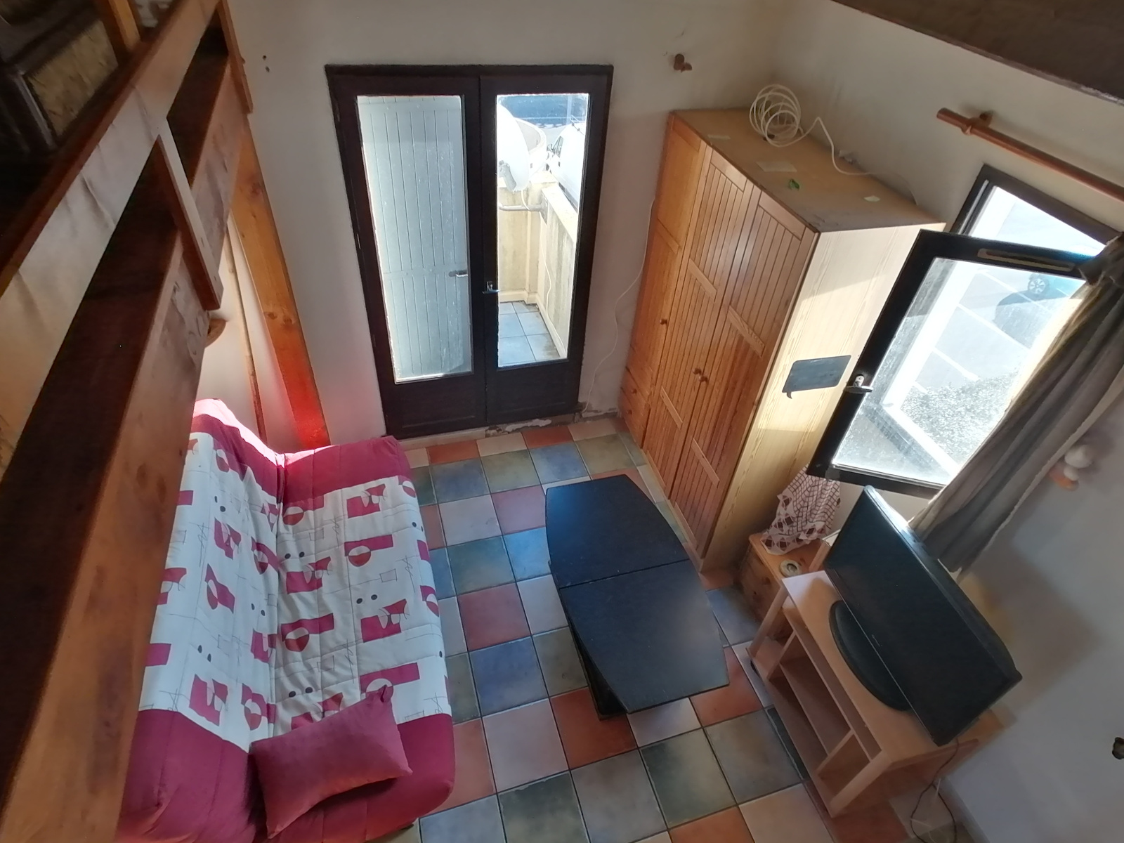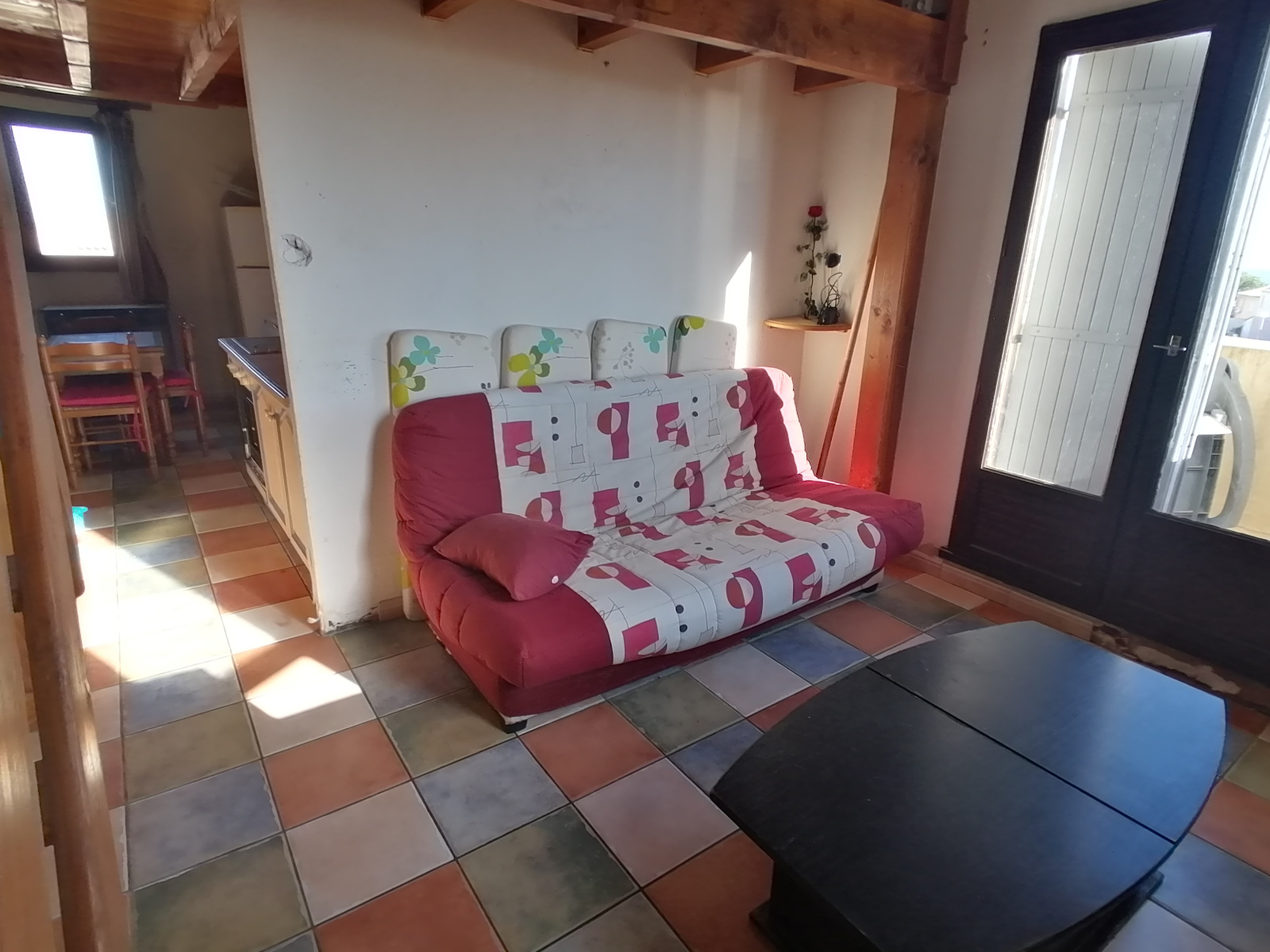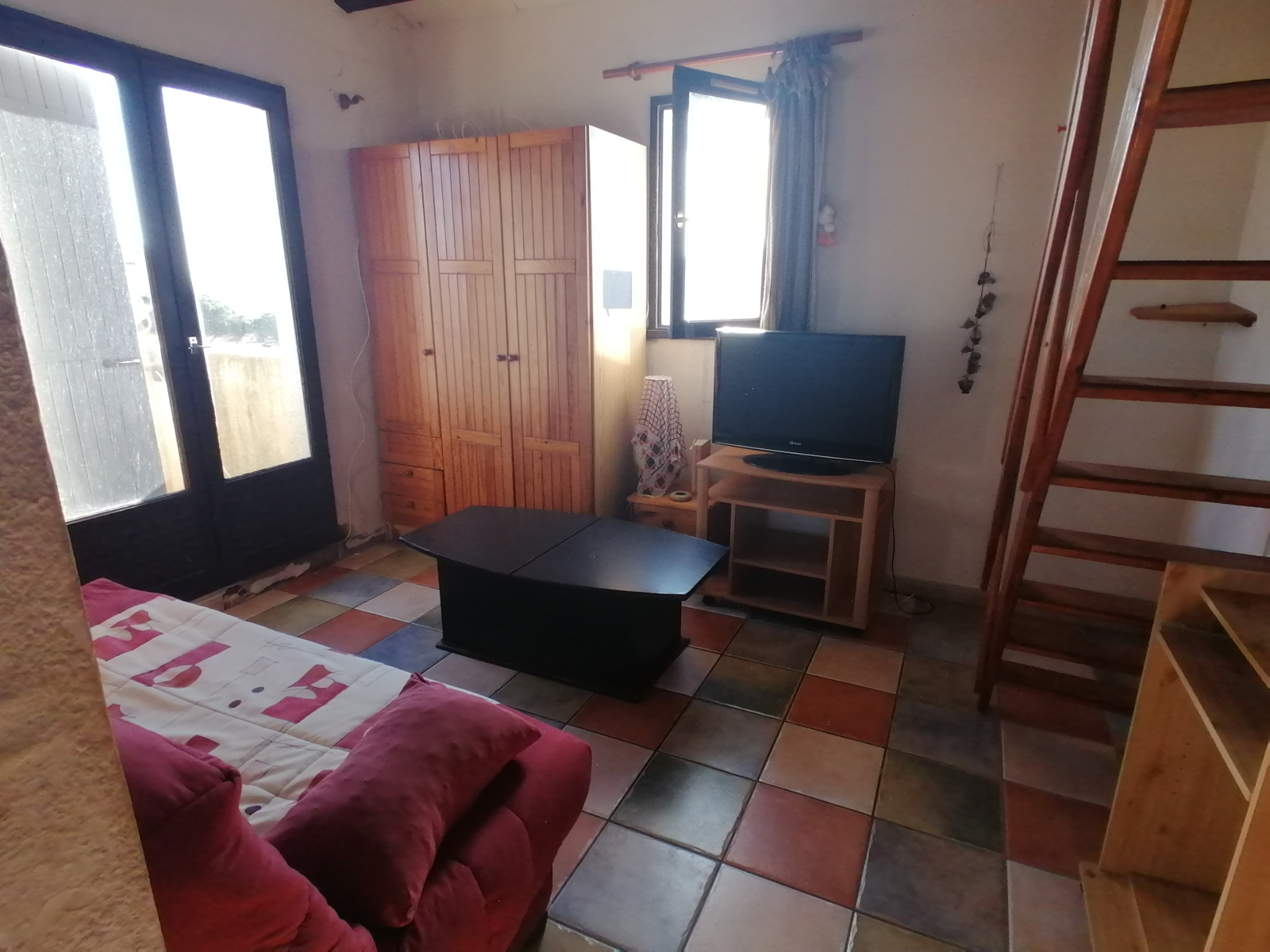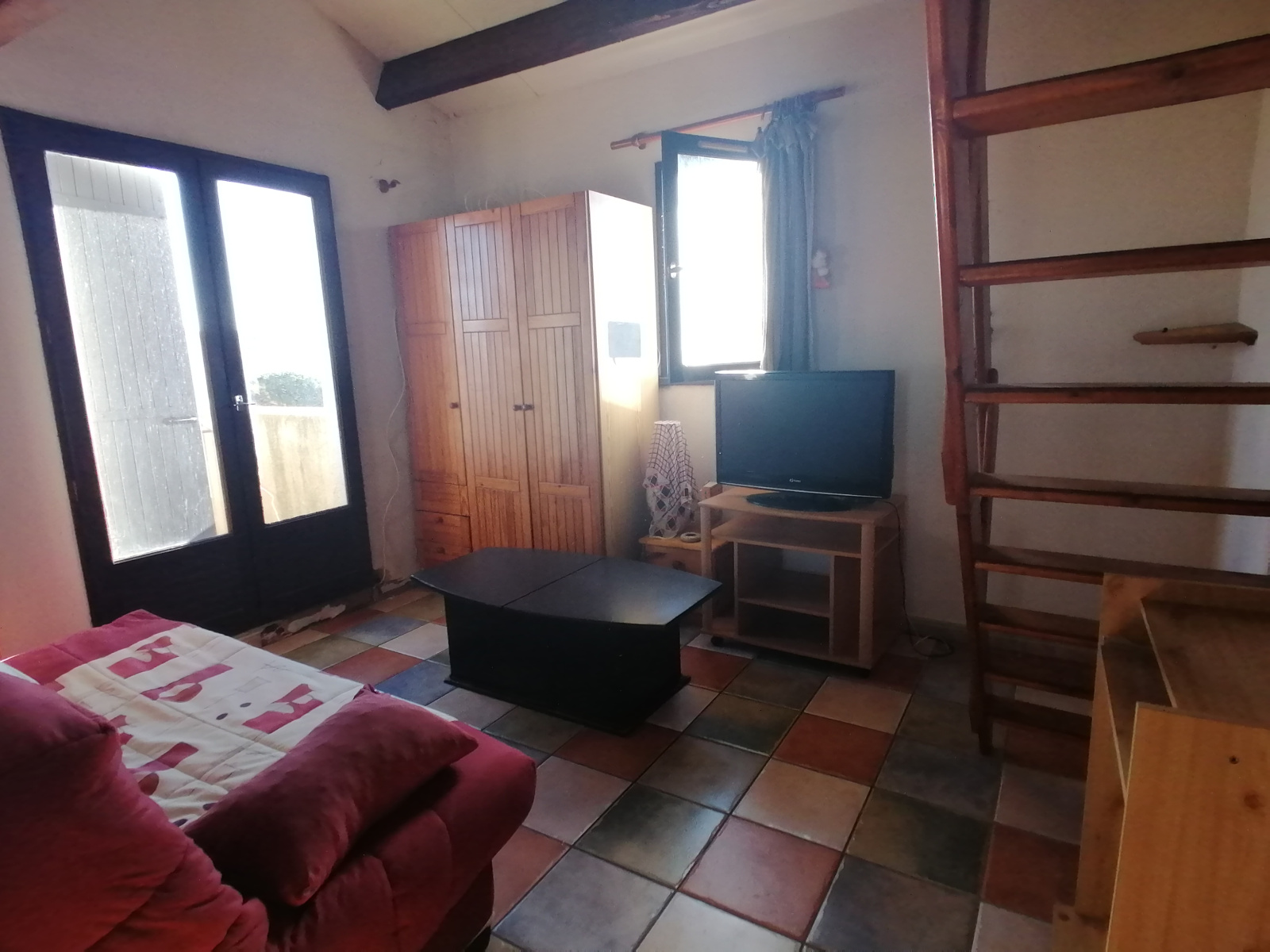 Dans une résidence avec piscine et tennis, cet appartement se compose d'un coin salon, cuisine séparée avec coin repas une chambre, une mezzanine, le tout nécessitant quelques travaux de rénovations
