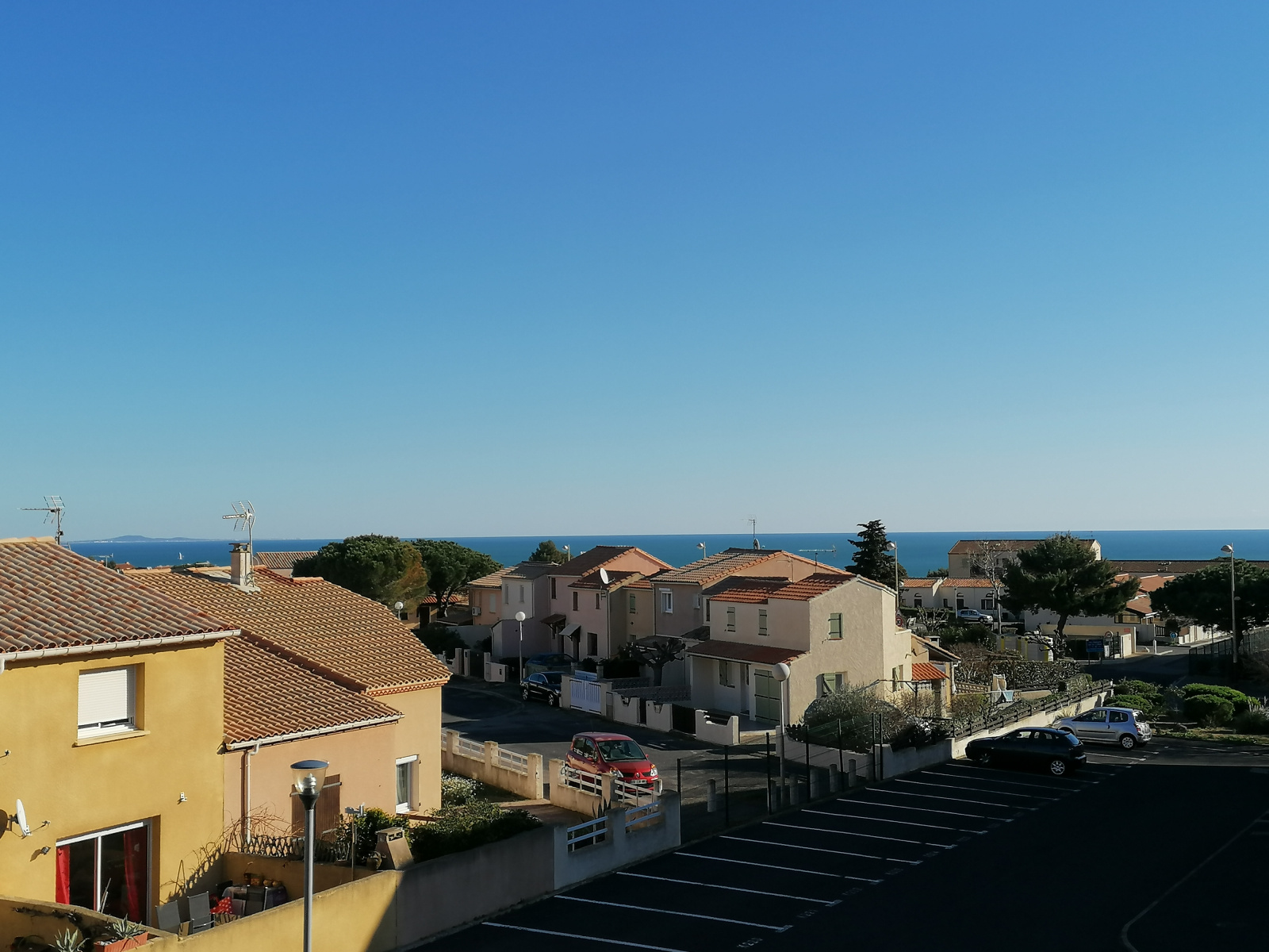 terrasse avec belle vue sur la mer, parking privé.