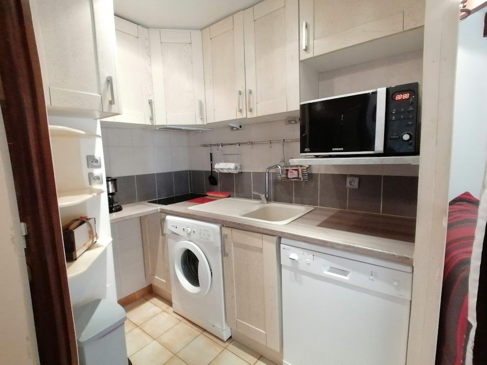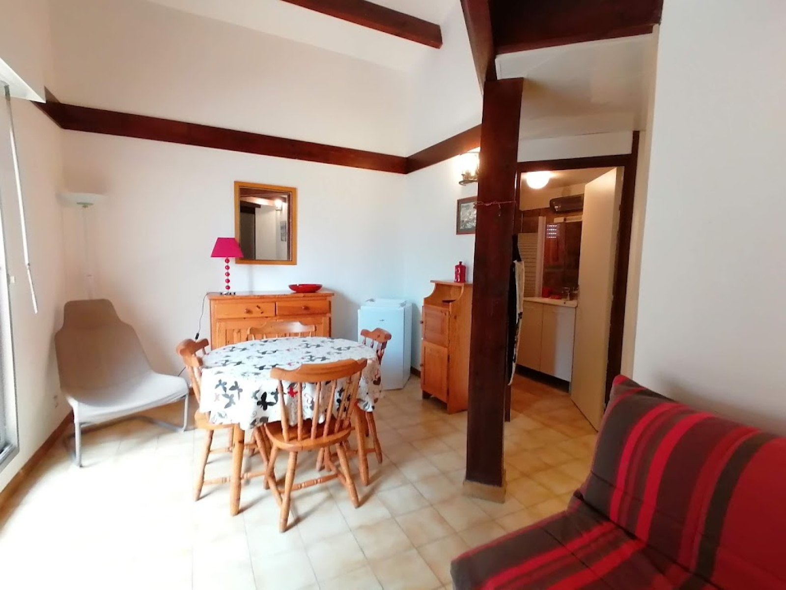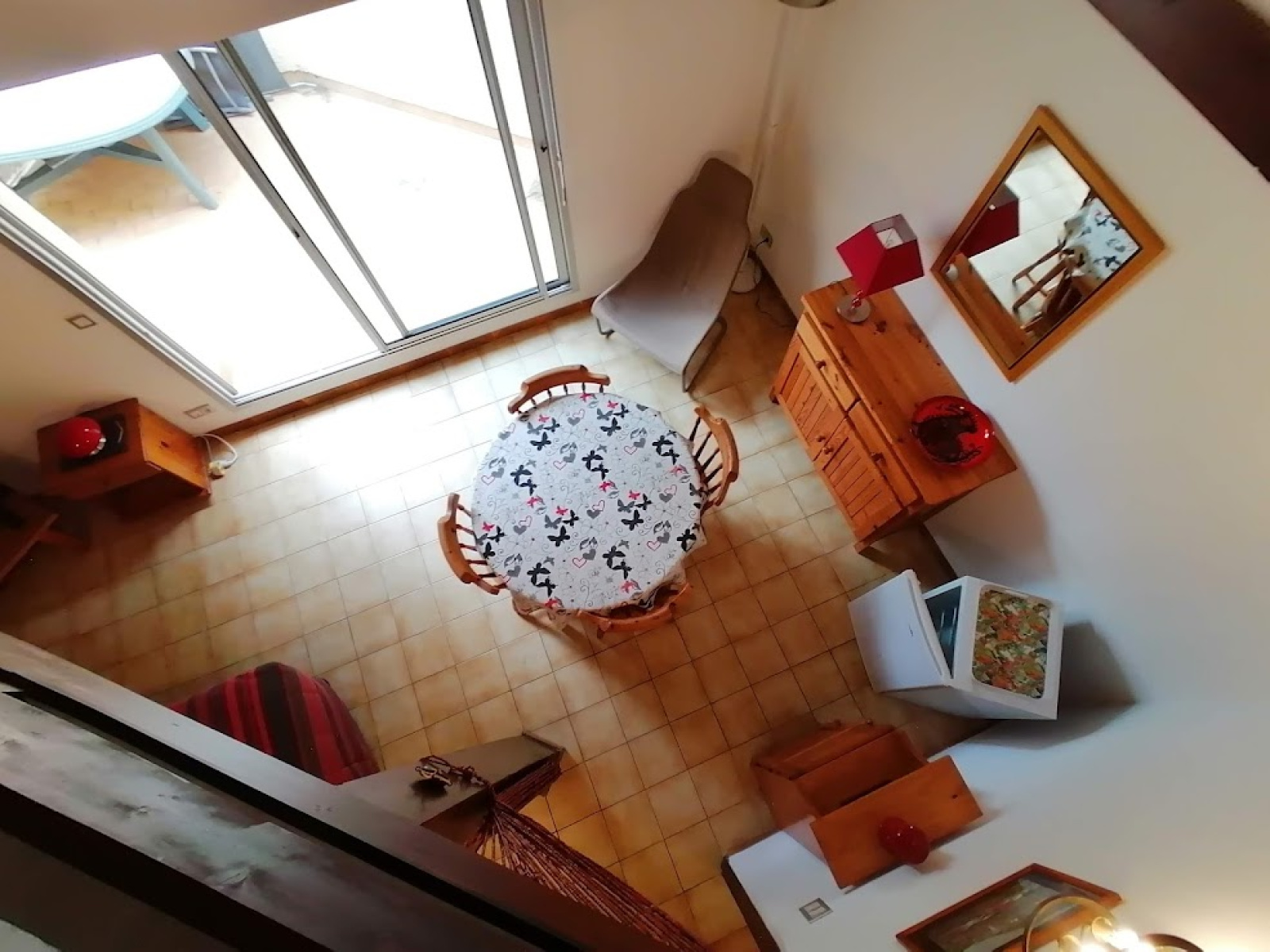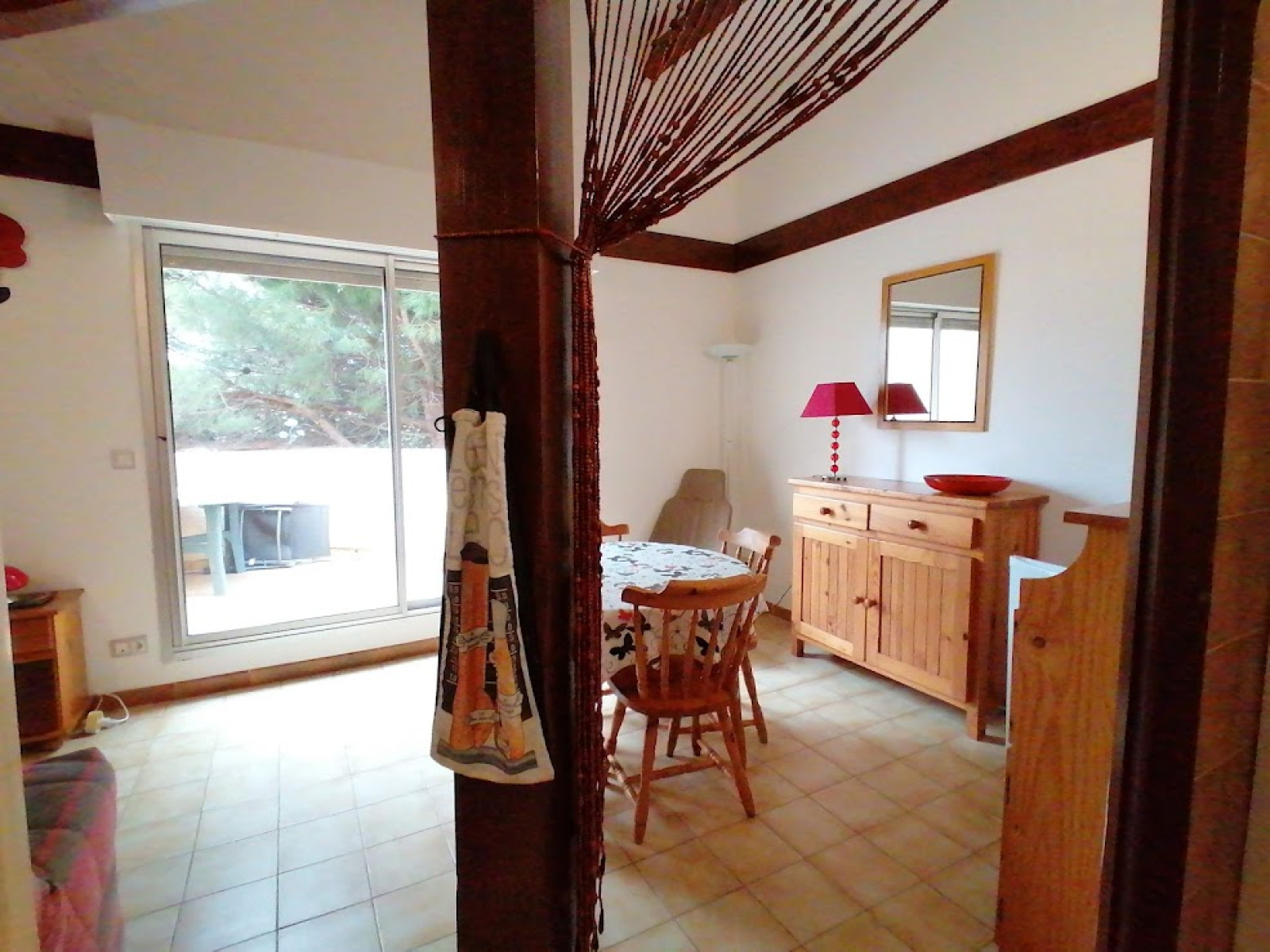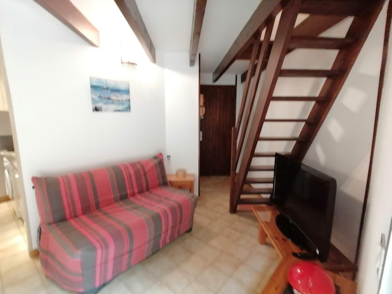 Situé dans une petite résidence de 30 lots, à 100 m de la plage, cet appartement se compose, d'une entrée sur séjour, une chambre, cuisine ouverte, salle de bain avec baignoire et wc, et à l'étage une chambre et un coin mezzanine 5m2 hors carrez.