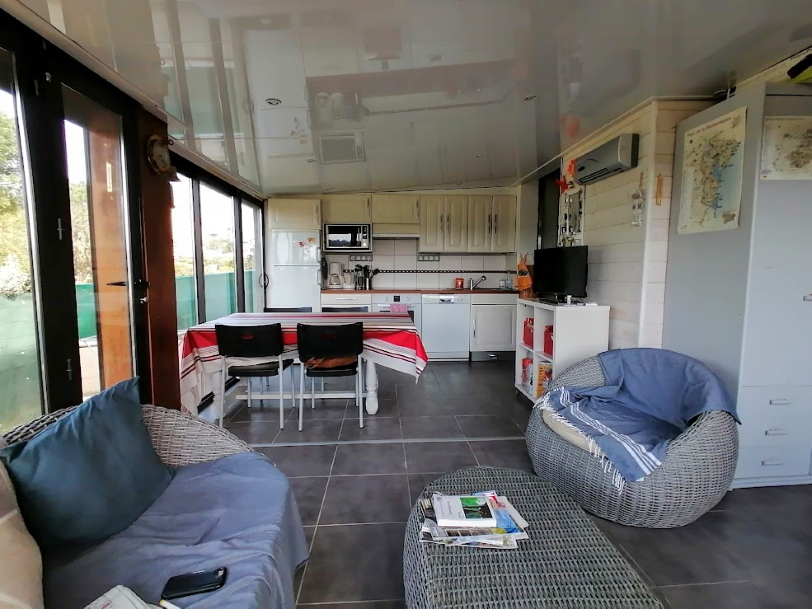 Il se compose d'une grande véranda de 21,97 m2 avec cuisine tout équipée, une chambre, un coin cabine, et une chambre cloisonnable avec coin bureau, le tout modulage à volonté pour créer 3 chambres ou 2 chambres et coin salon, nombreux rangements et salon, Salle d'eau avec douche à l'italienne, wc séparé.