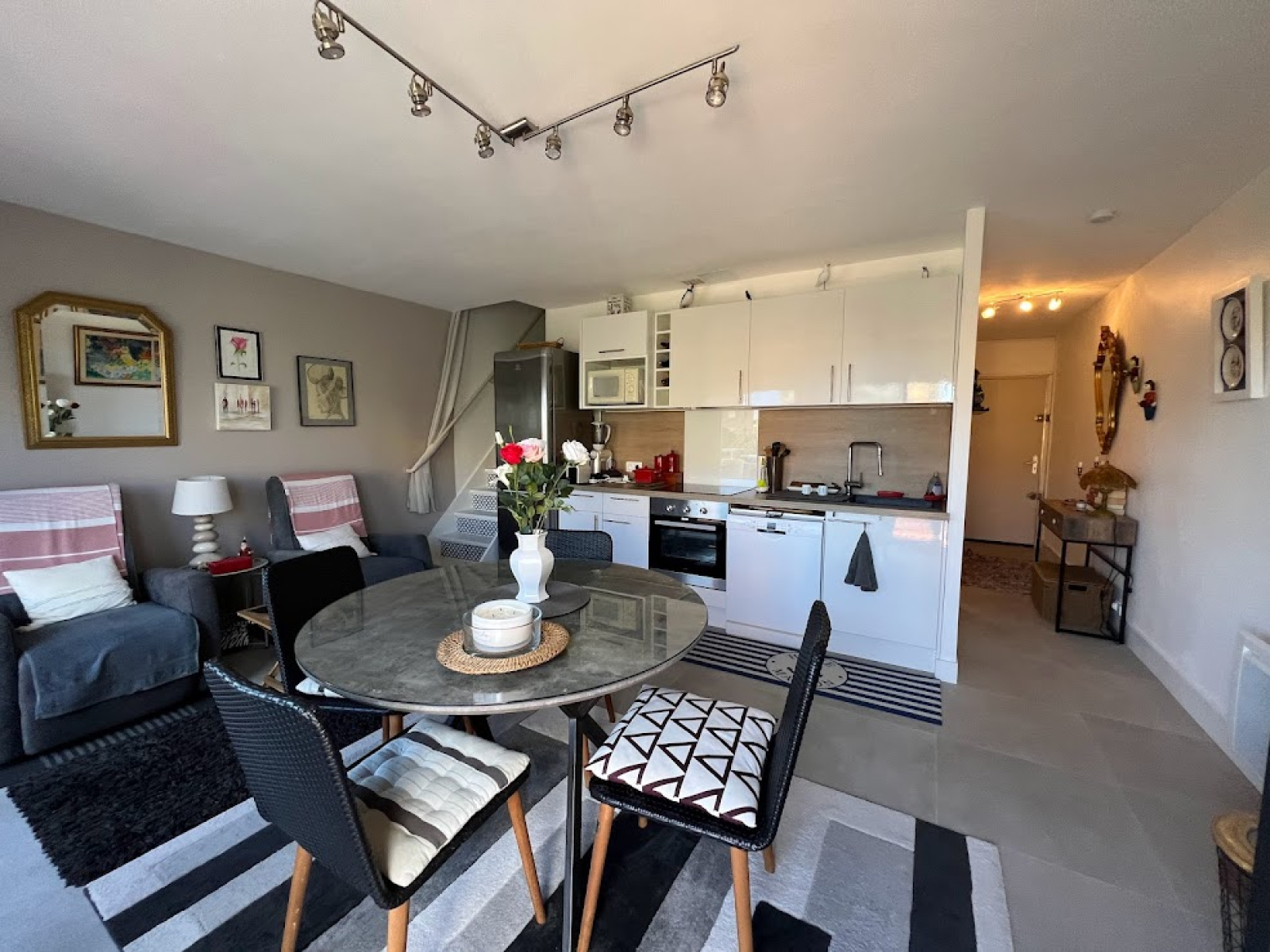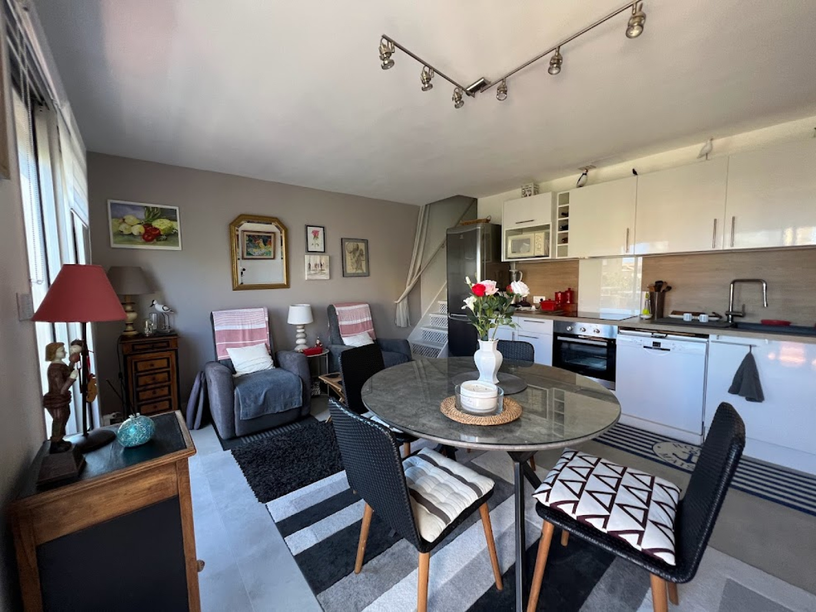 Dans une petite résidence de 8 lots, bel appartement duplex composé d'une entrée sur séjour avec cuisine équipée, une chambre avec placards, une salle d'eau, wc séparés, à l'étage une grande chambre salon.