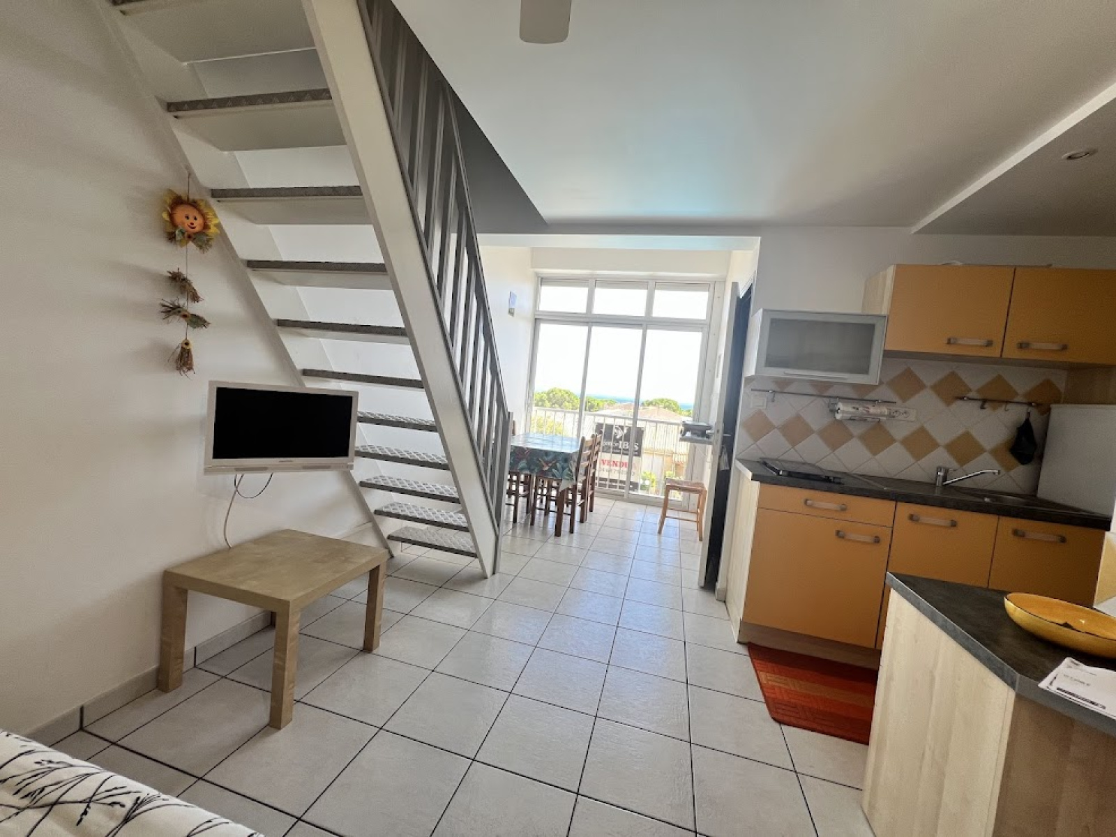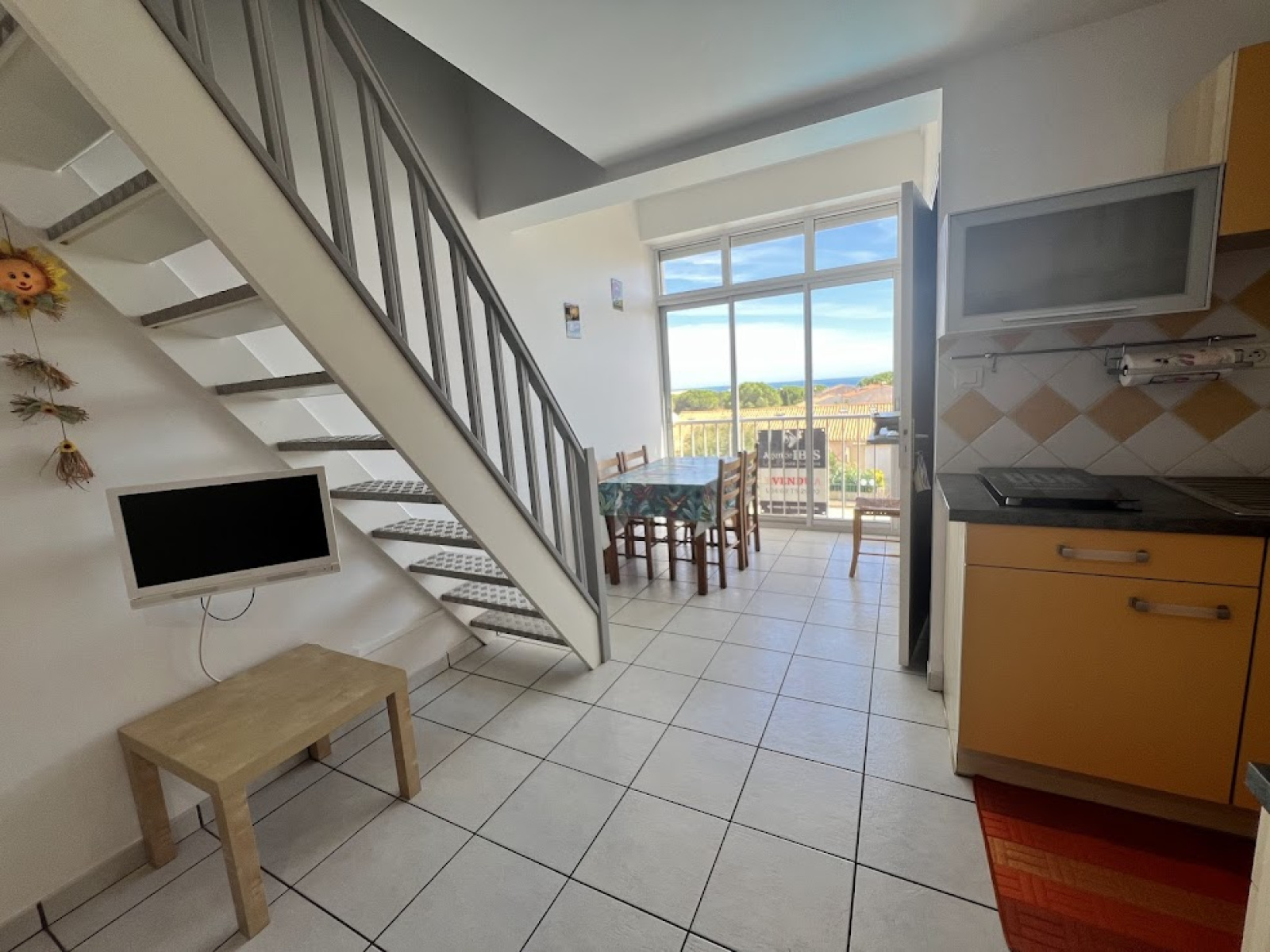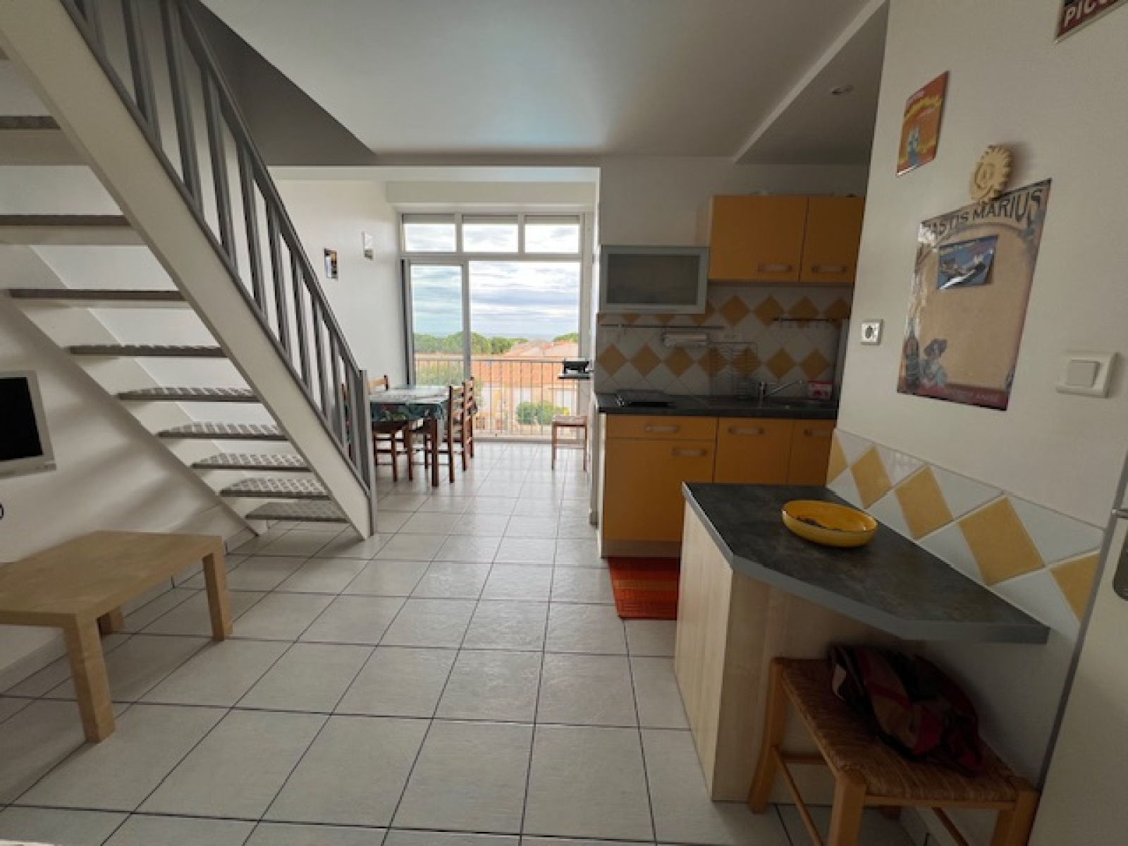 Dans une résidence avec piscine et tennis, appartement T2 Mezzanine situé au 2ème et dernier étage, il se compose d'un séjour avec cuisine équipée, une chambre, une salled'eau avec wc et à l'étage une grande mezzanine avec placard