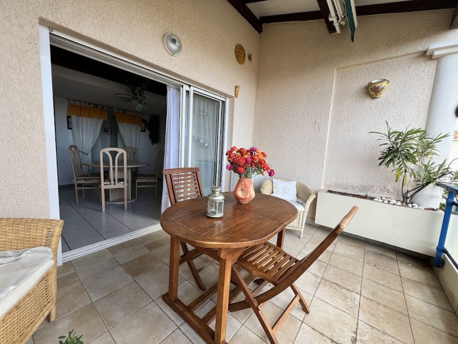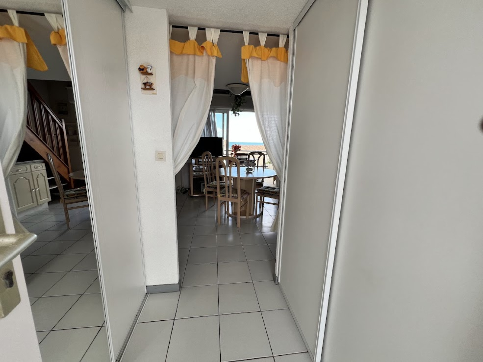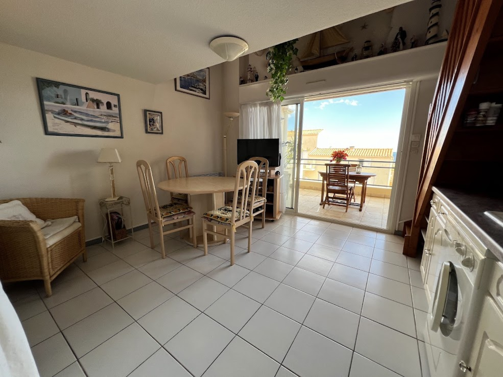 Dans une petite résidence avec piscine, cet appartement se compose d'une entrée avec grands placards de chaque côté, un séjour avec coin cuisine donnant sur une grande terrasse de 10m2 face à la mer.