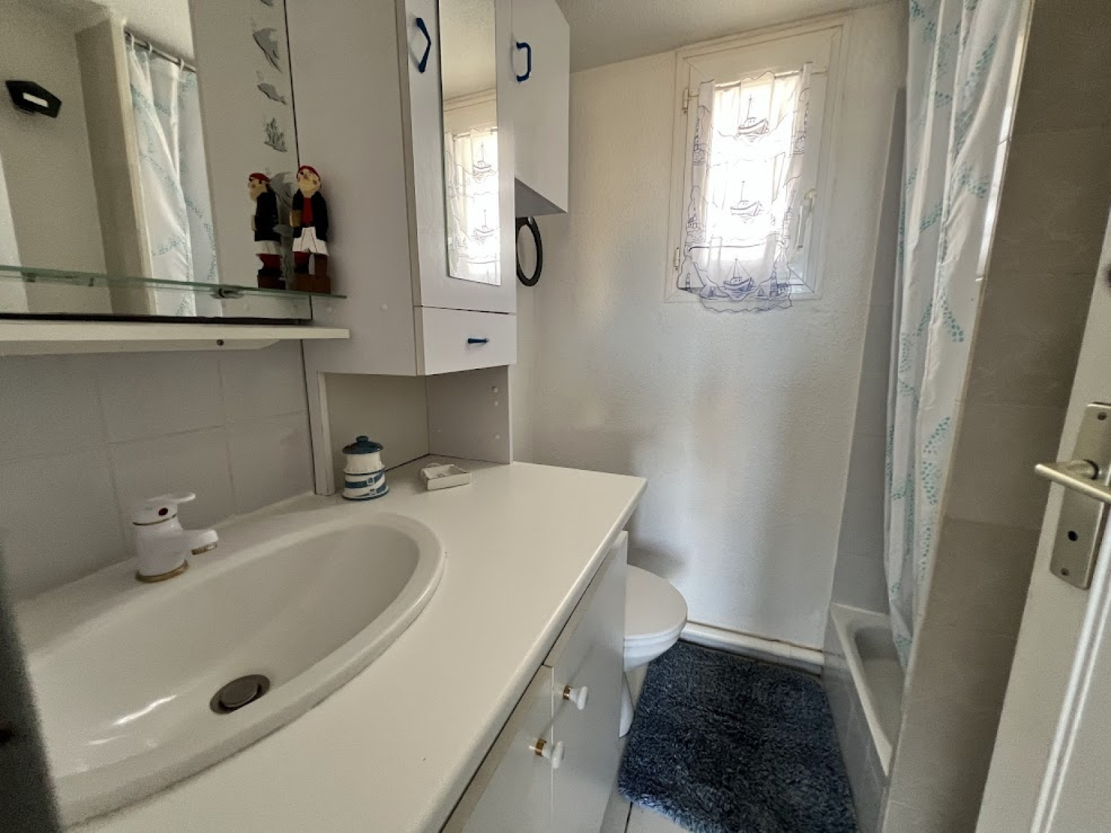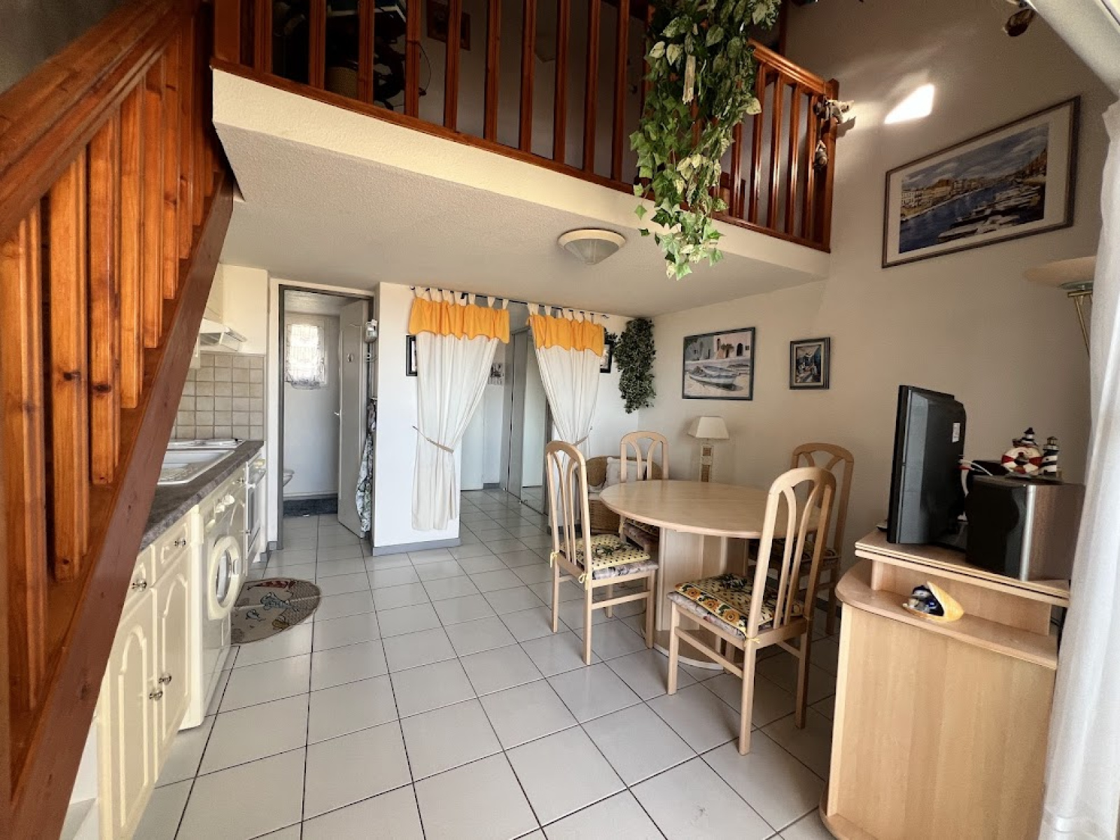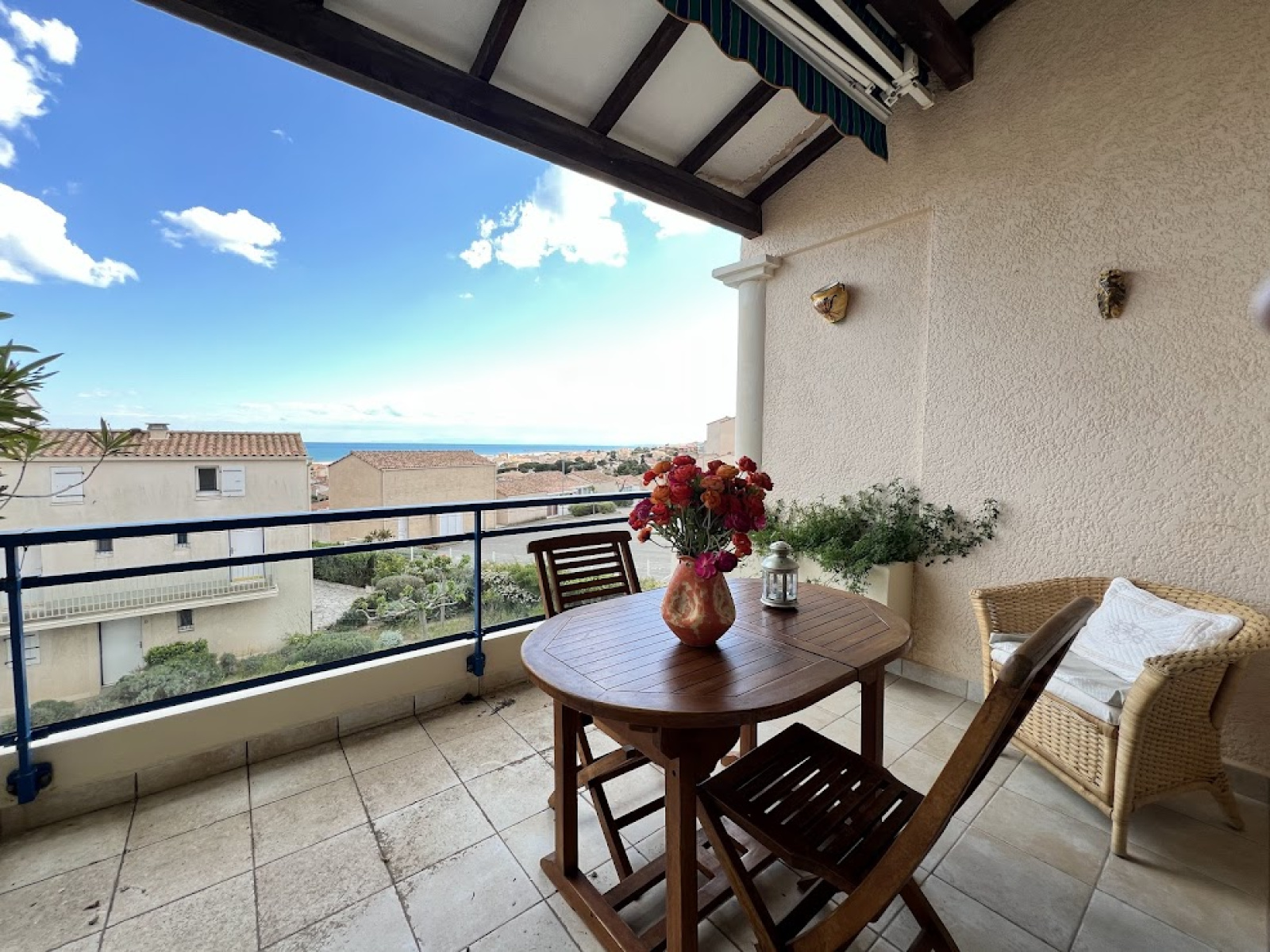 Dans une petite résidence avec piscine, cet appartement se compose d'une entrée avec grands placards de chaque côté, un séjour avec coin cuisine donnant sur une grande terrasse de 10m2 face à la mer.