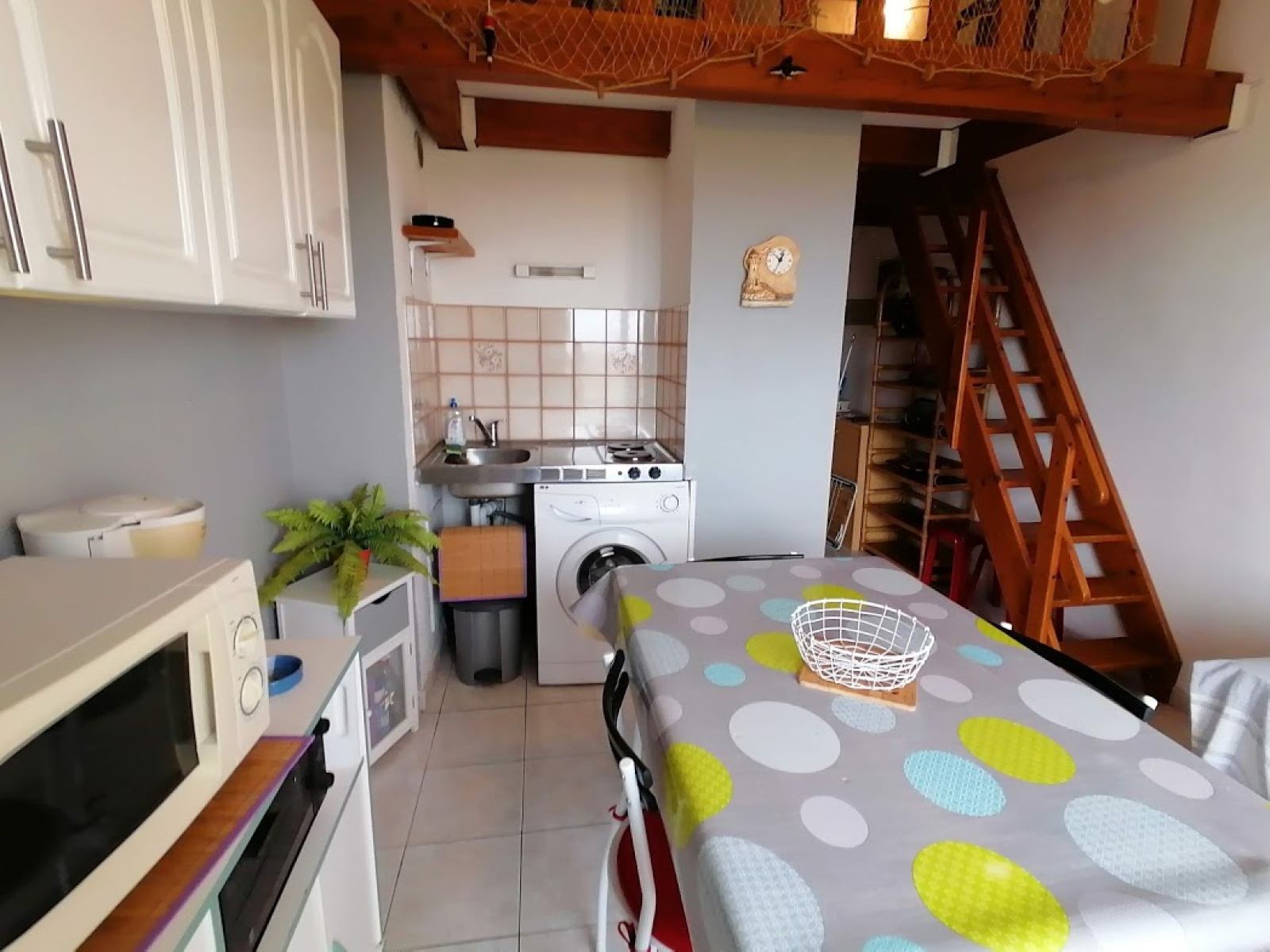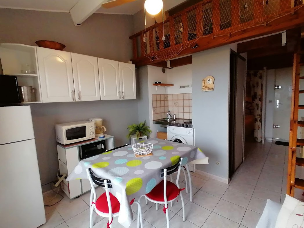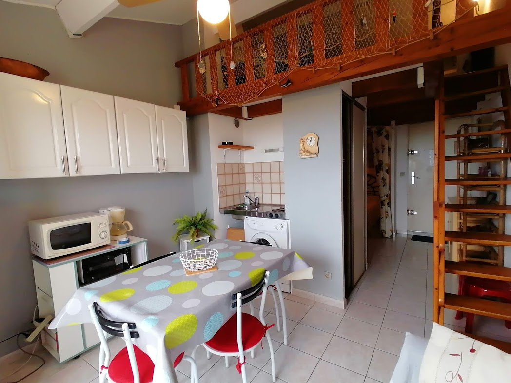 Situé dans une résidence à 400 m de la plage et du centre et du marché de St Pierre la mer avec une vue panoramique sur la mer, cet appartement se compose d'une entrée, séjour avec cuisine équipée, une chambre, salle d'eau avec douche et wc et une mezzanine.